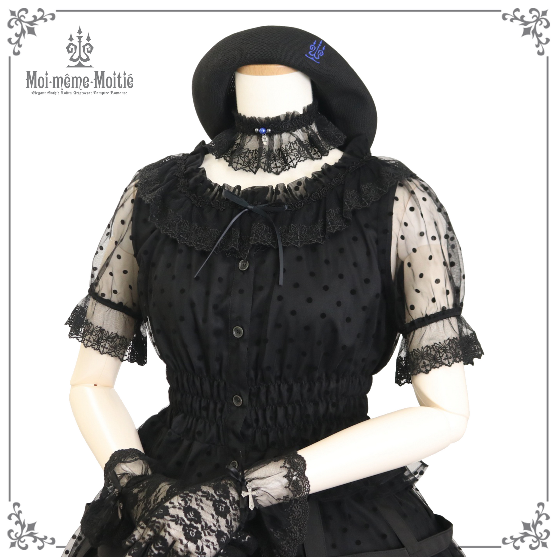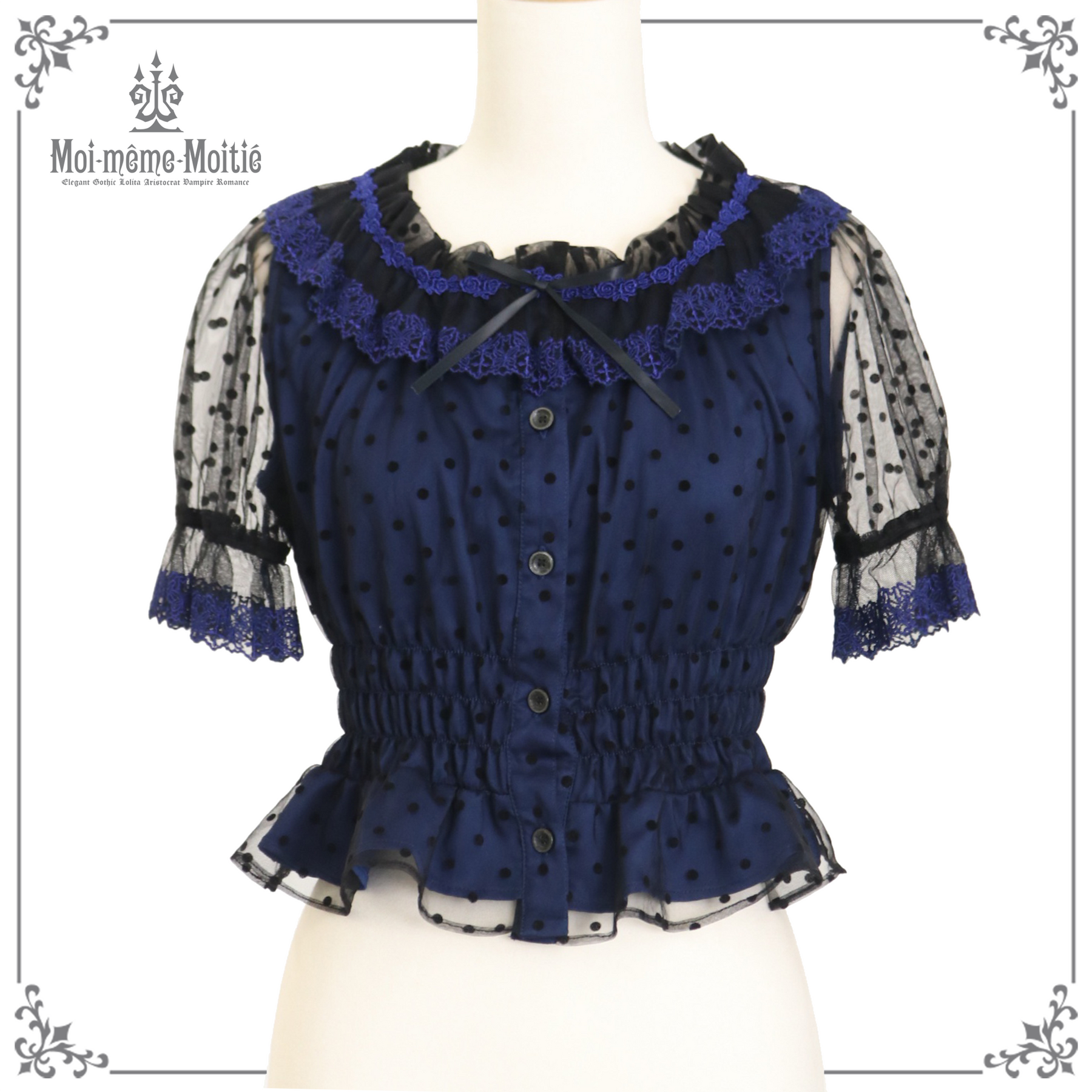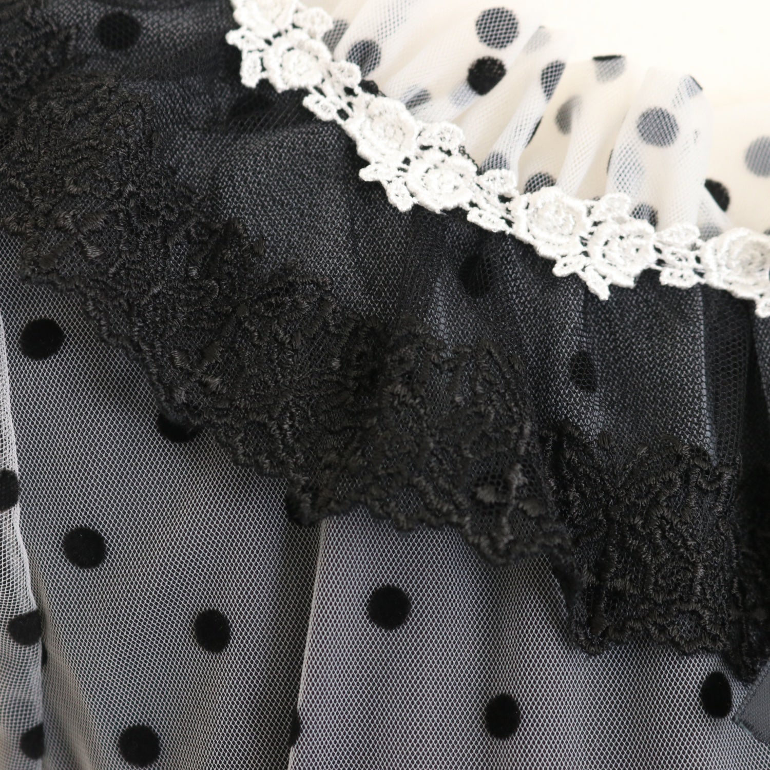 ドット柄フロッキーのチュール生地で、裾がペプラムのオーバーブラウスです。
