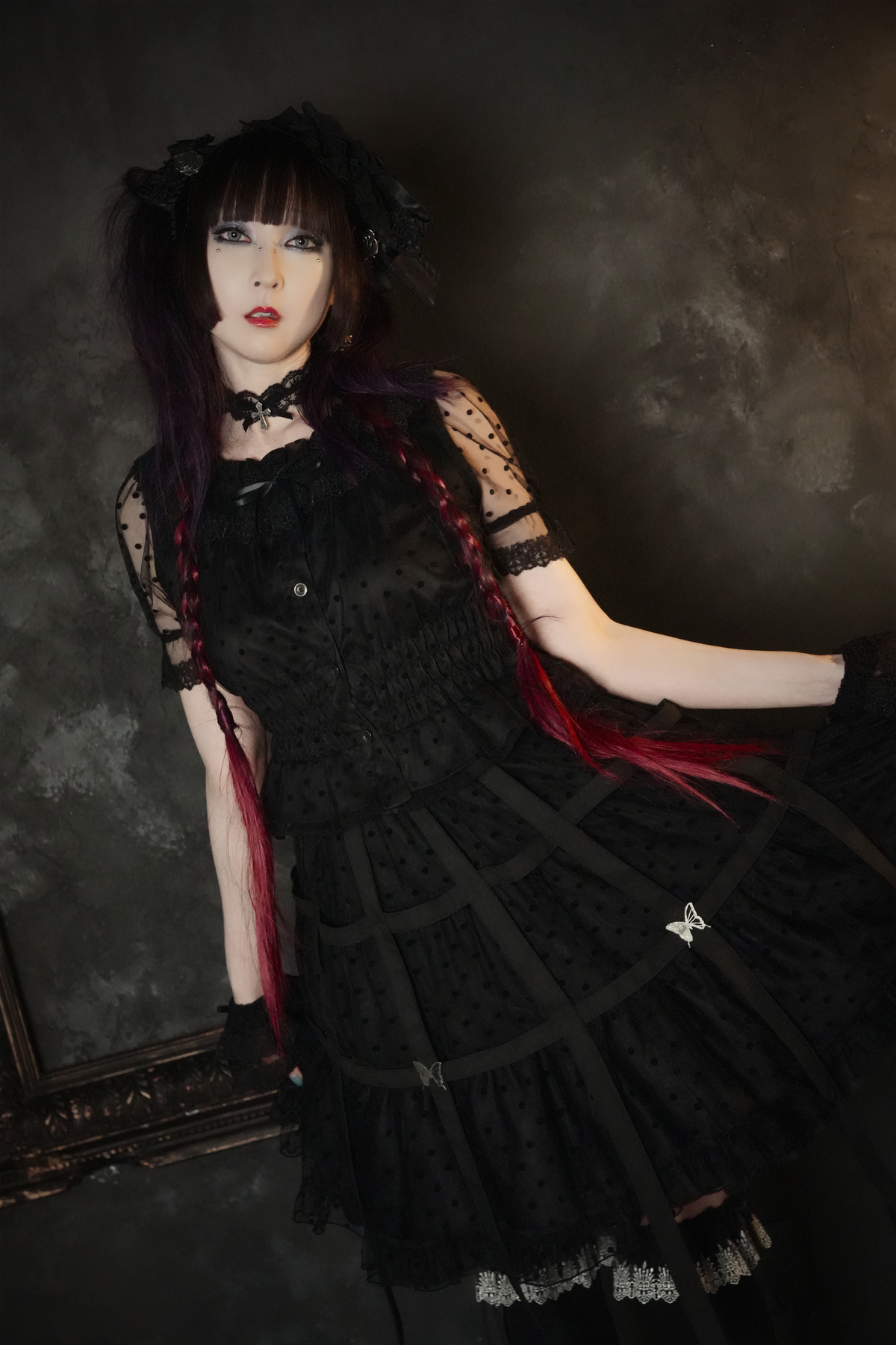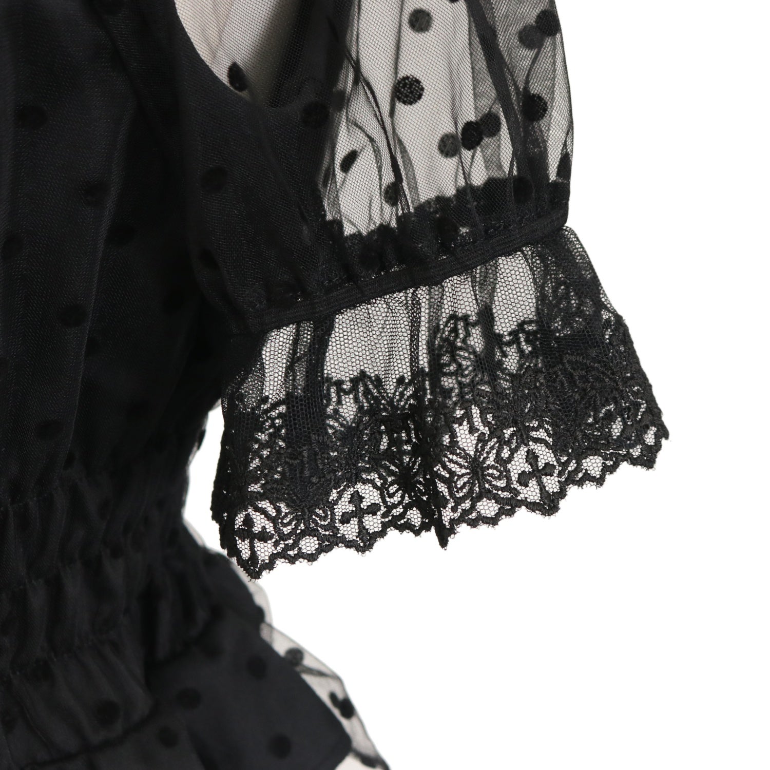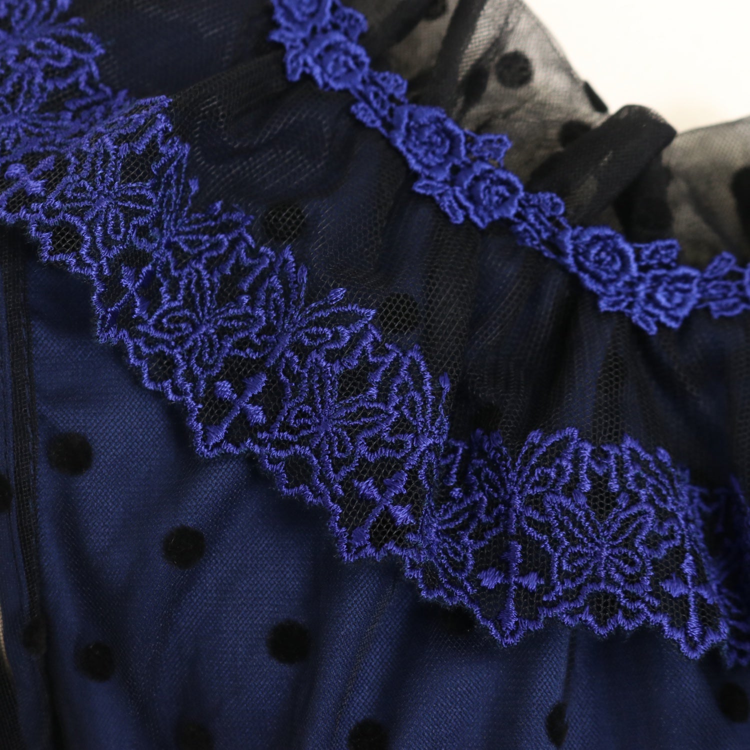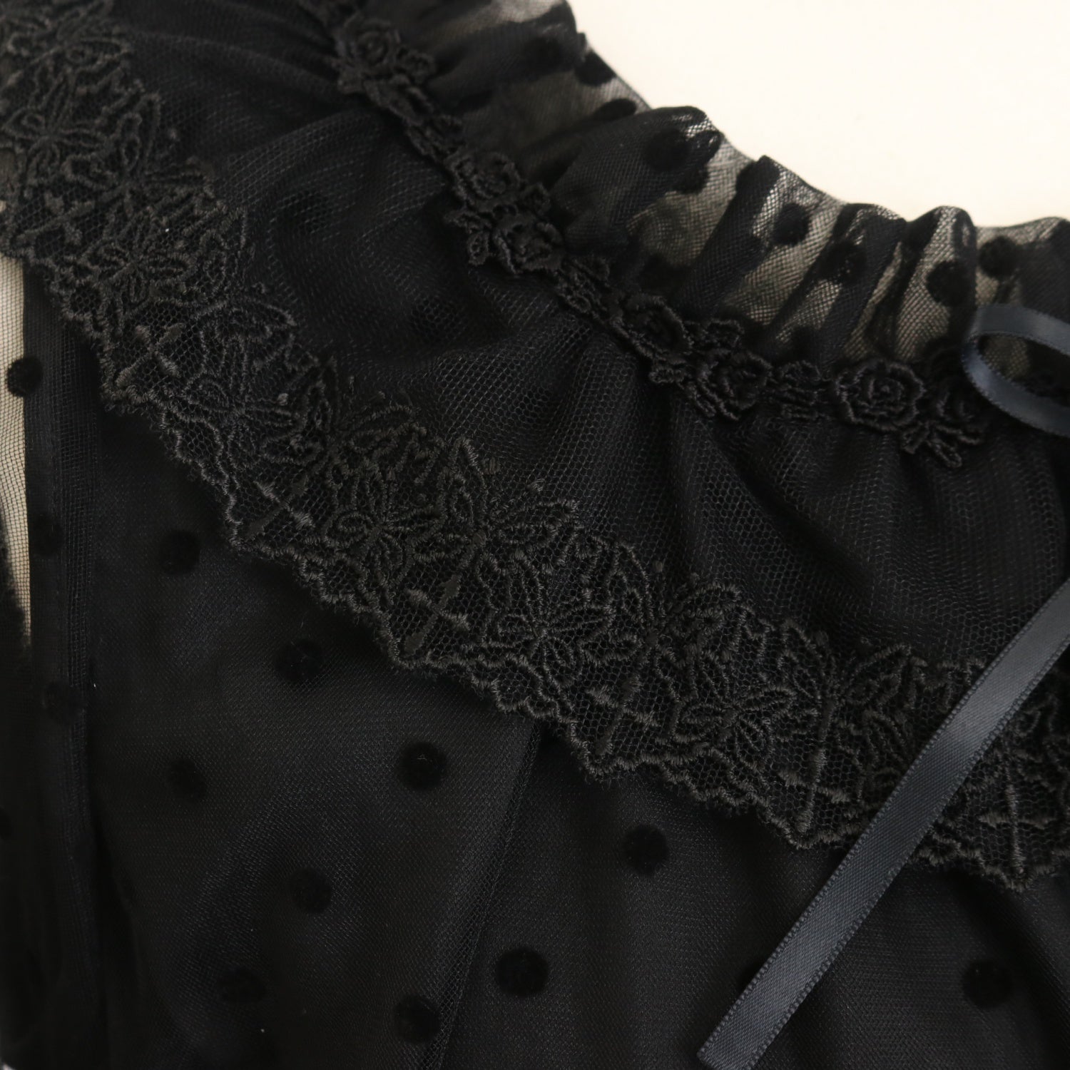 ドット柄フロッキーのチュール生地で、裾がペプラムのオーバーブラウスです。