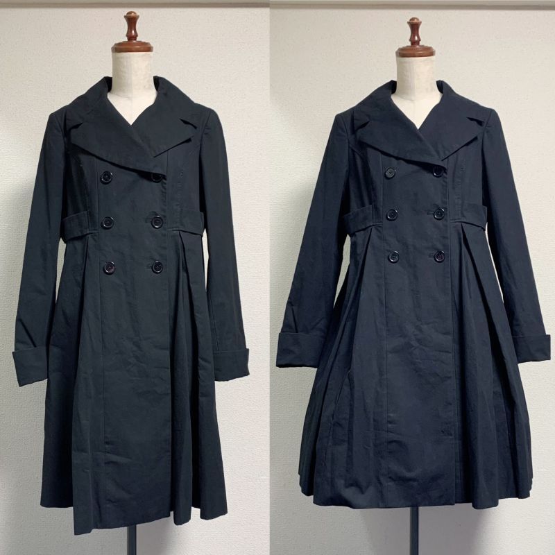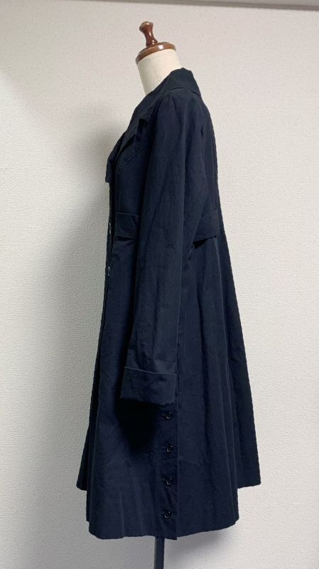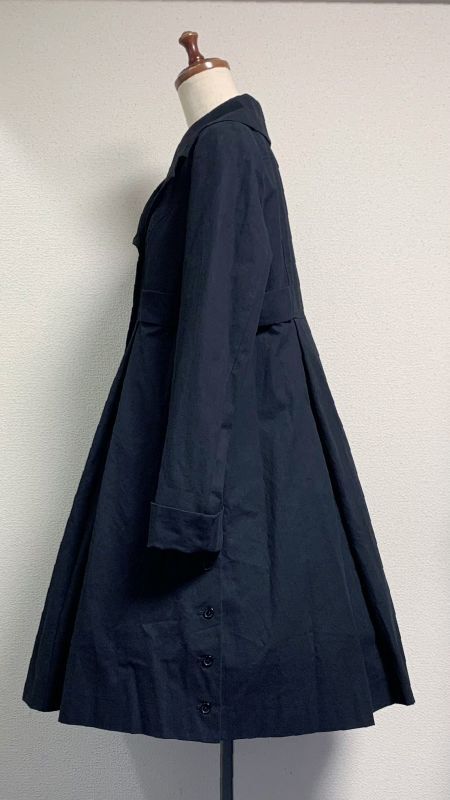着丈(背中心より:96.8cm) バスト:105cm ウエスト:100cm 肩幅:40cm 袖丈:60cm 袖巾:39.3cm 袖口:30cm 裾周り:170cm+タック80cm ※裏地付 |