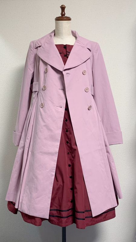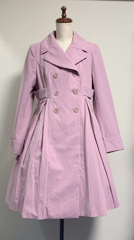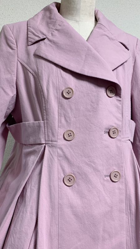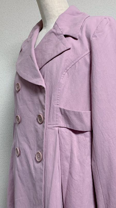 ダブルボタンコート カジュアル【無地ラベンダーピンク】