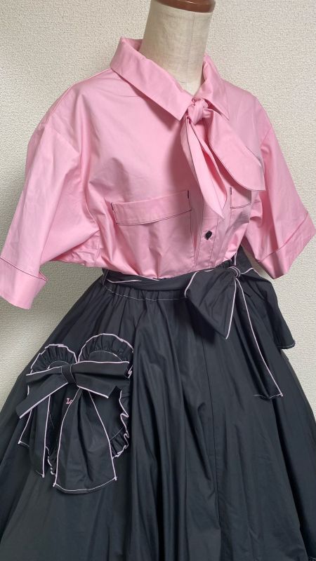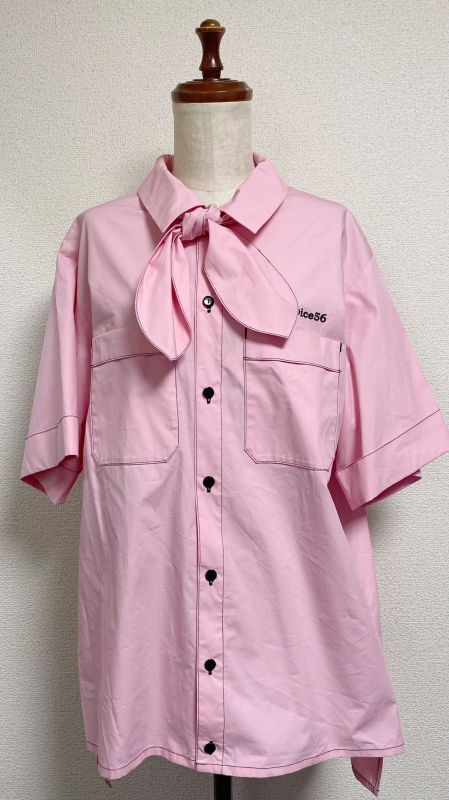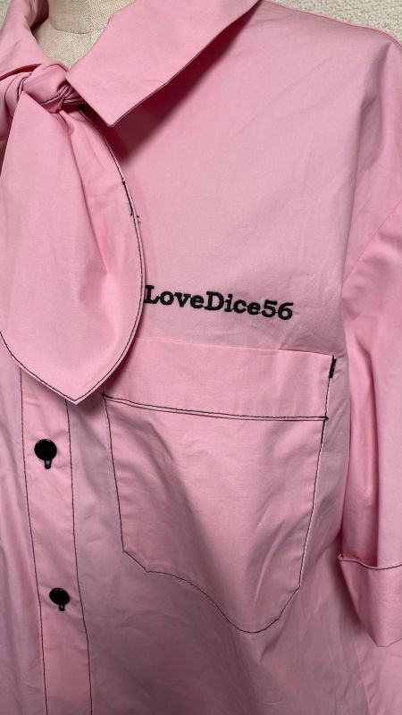 ボーイフレンドワークシャツ【ピンク×黒刺繍】