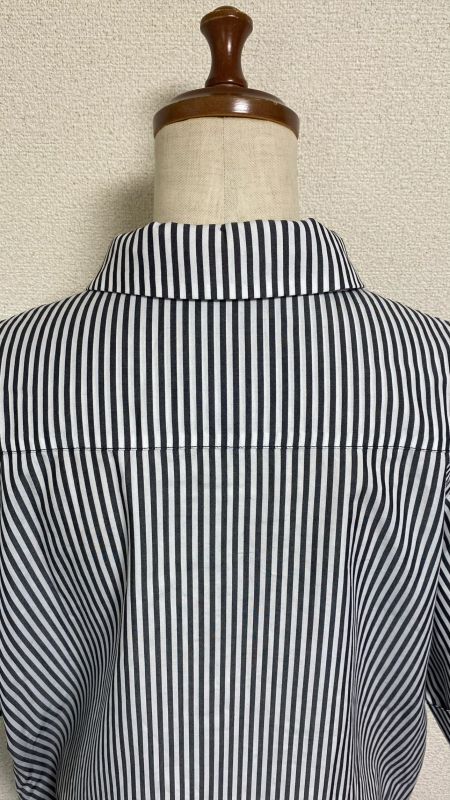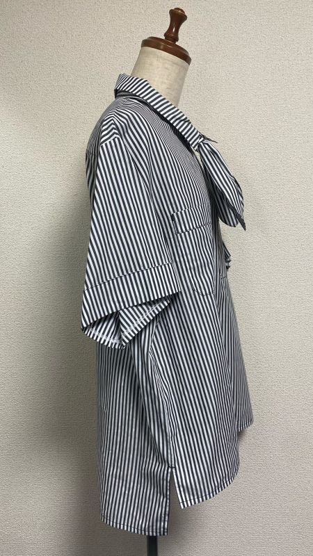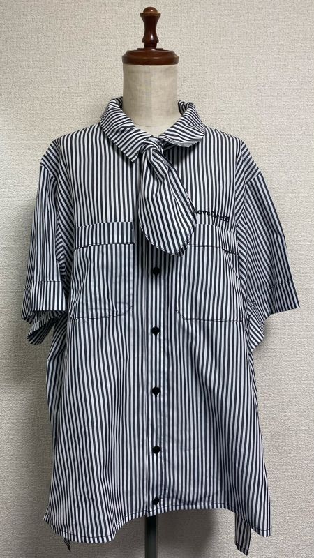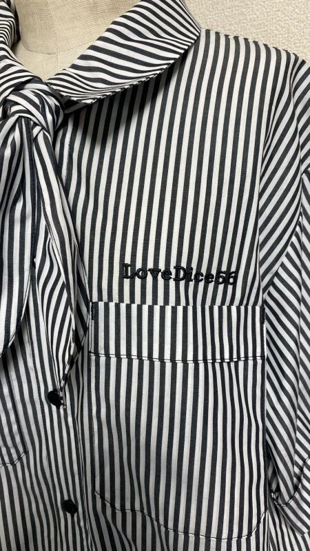 ボーイフレンドワークシャツ【黒白ストライプ×黒刺繍】