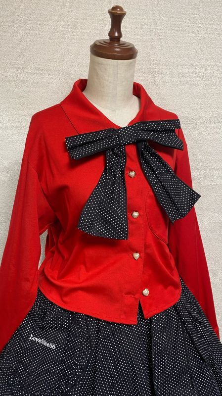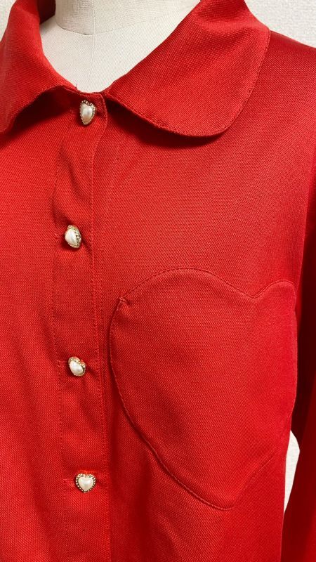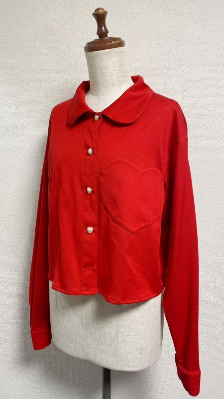 ハートポケットニットブラウス【赤】
