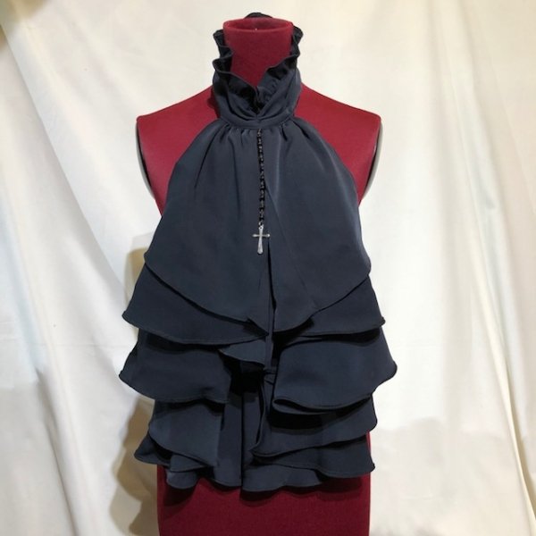 ロングタックドレープ十字架タイ付きブラウス【Lサイズ】