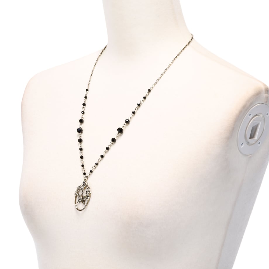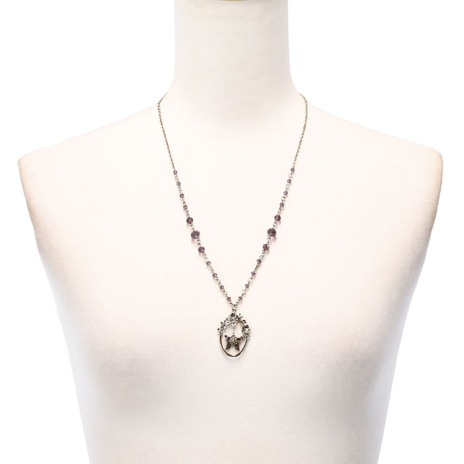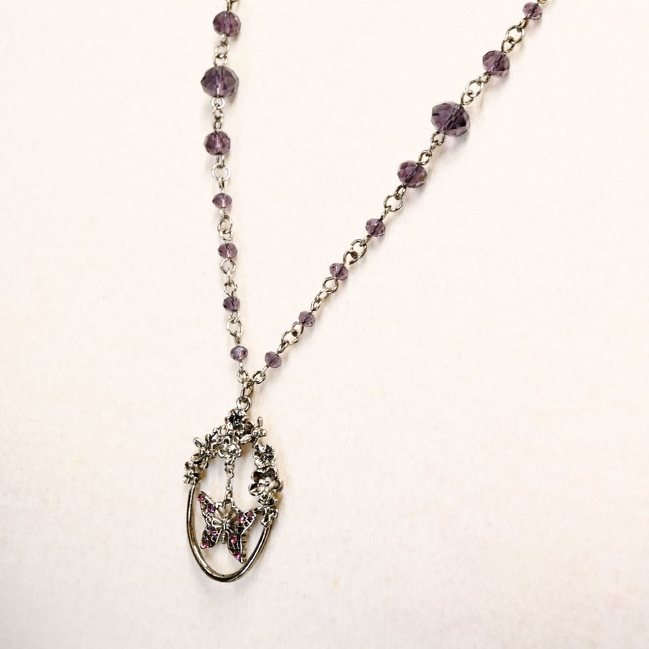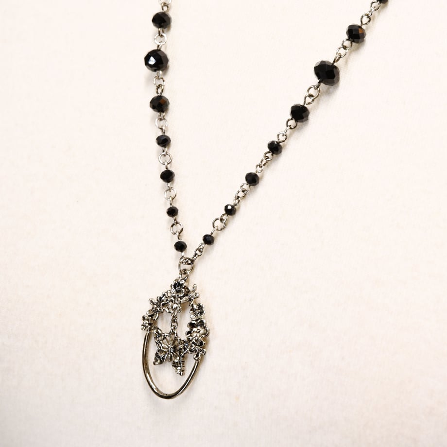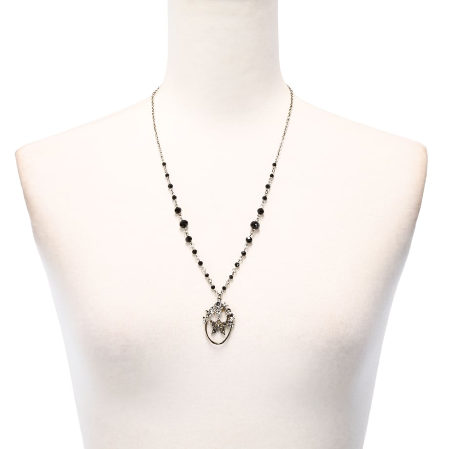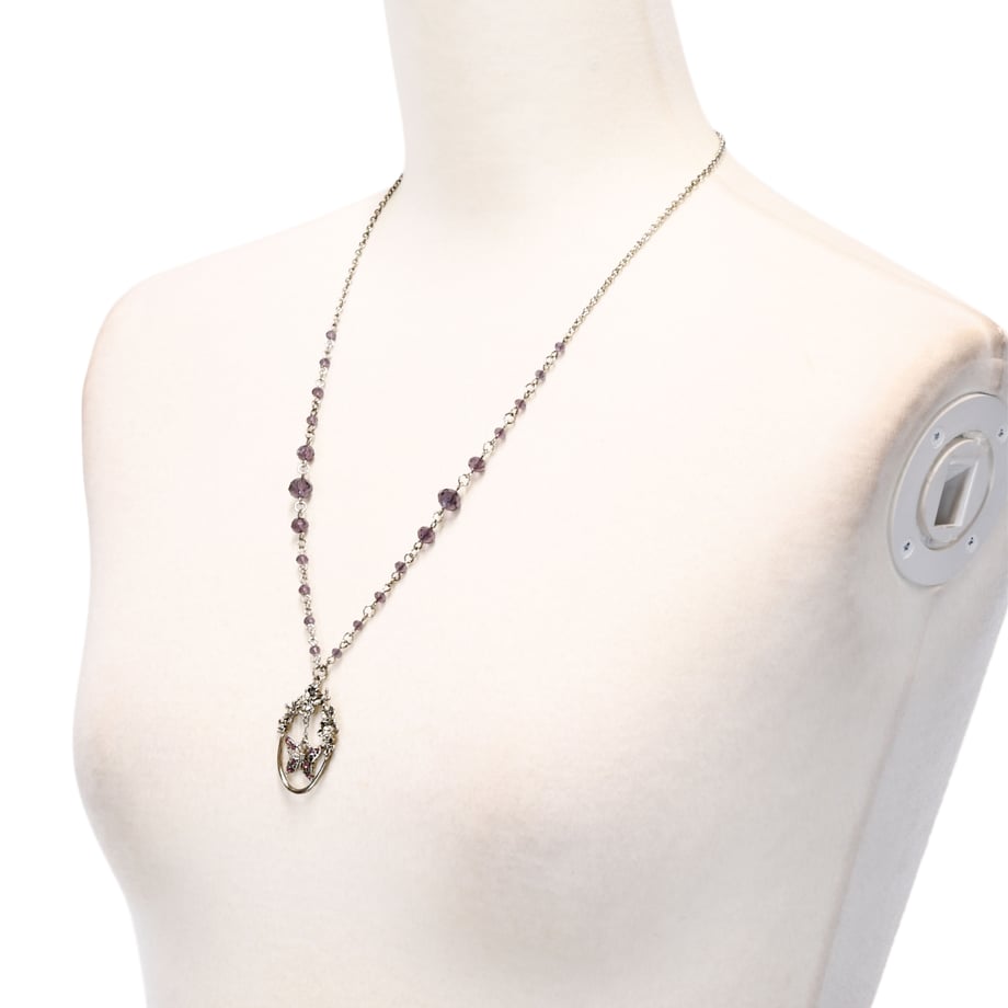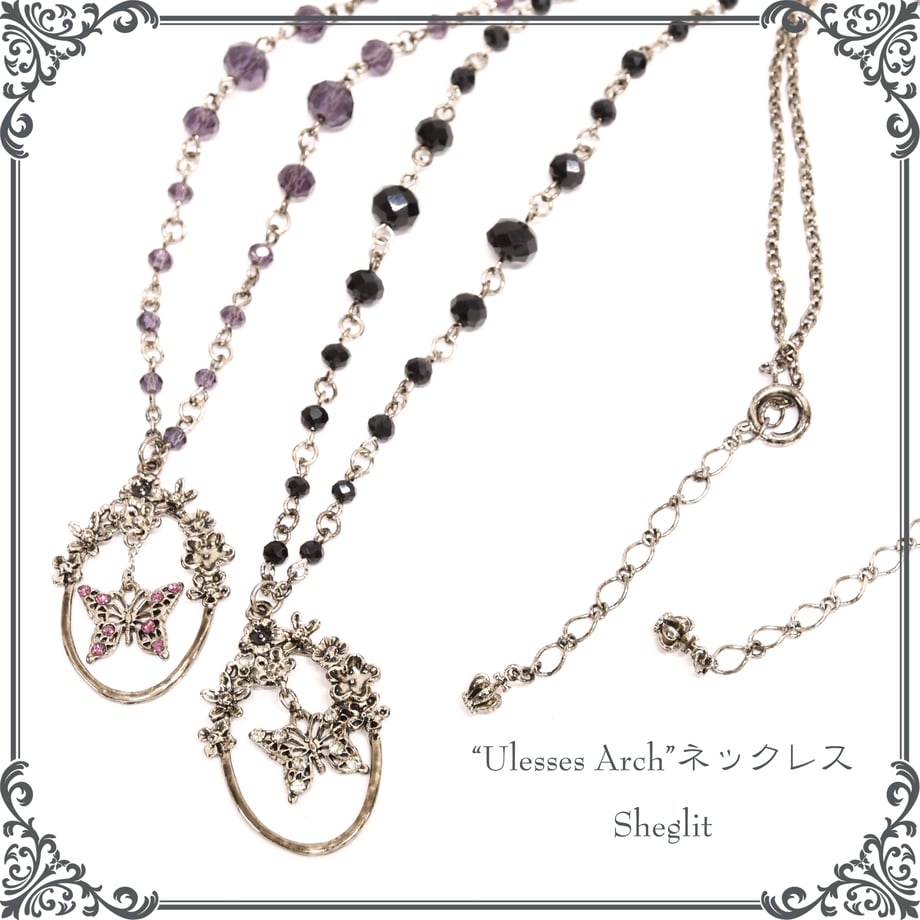 お花をあしらったアーチの中に揺れるユリシスが可憐な雰囲気のネックレス。