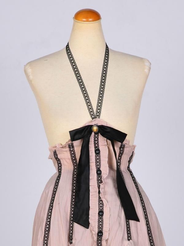 ★前開きなので、ブラウス・ワンピース等様々なアイテムとのコーディネートを楽しめるフレアーたっぷりの切り替えがフェミニンなホルターネックハイウエストスカートです。