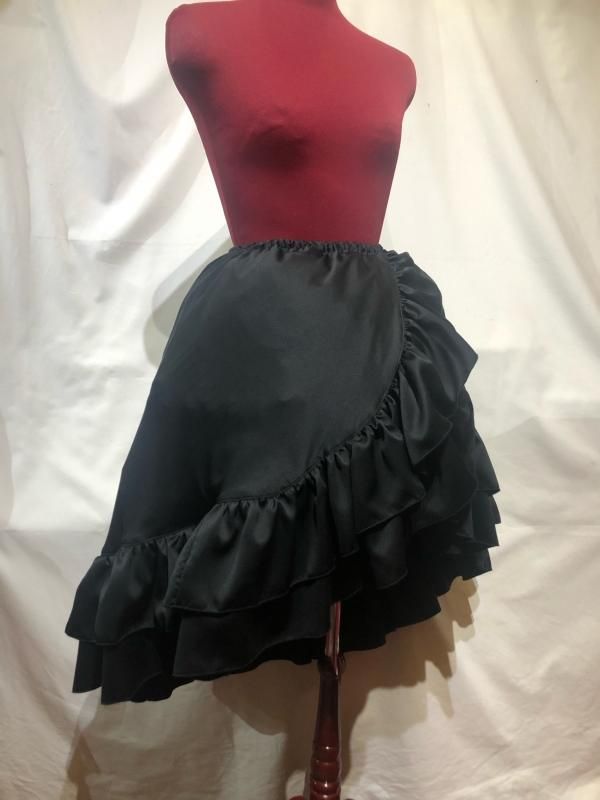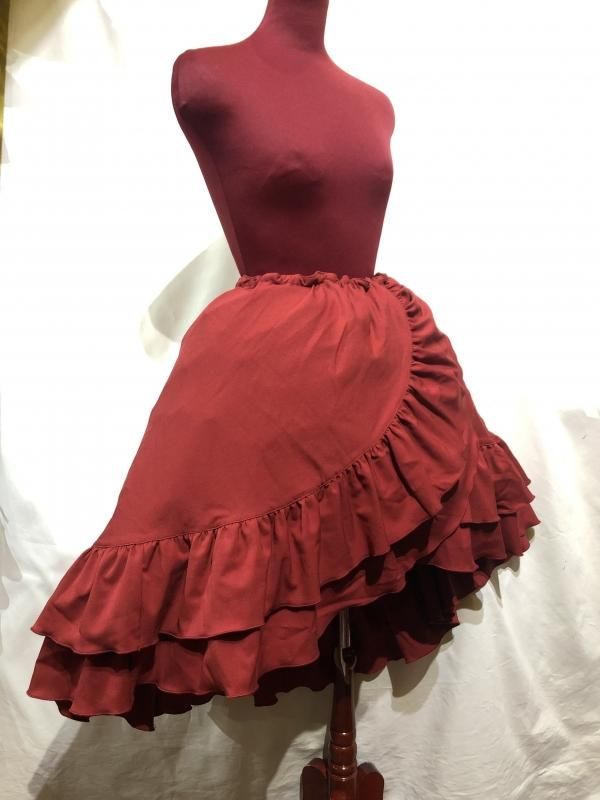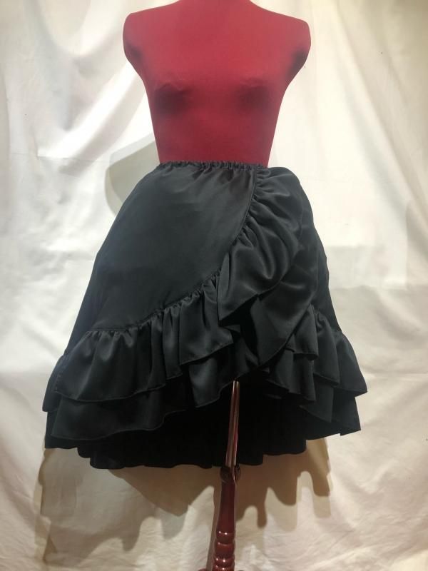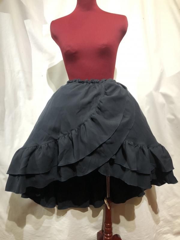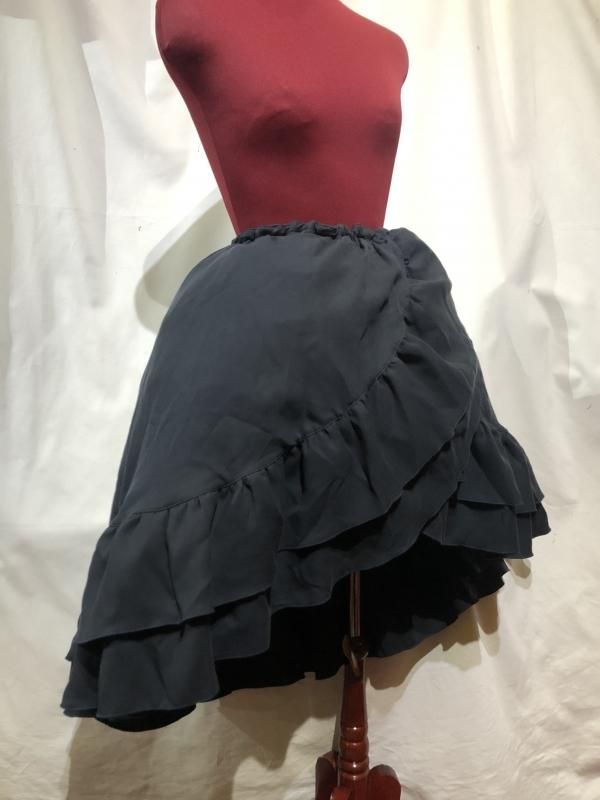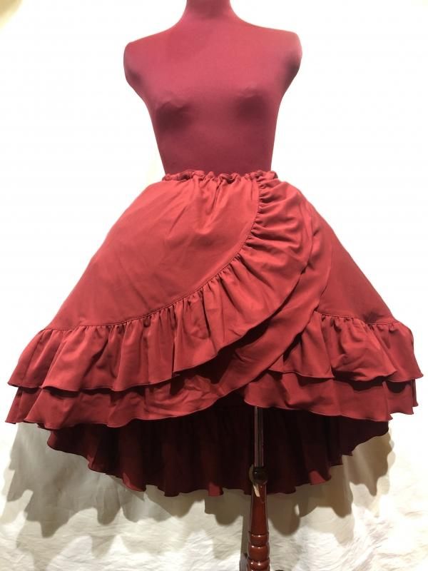 ★流れるようなフリルが美しいゴシックフェミニン調の巻きスカート風ロングスカート。