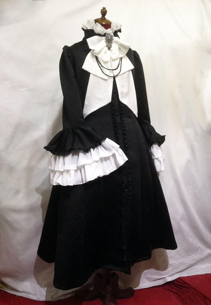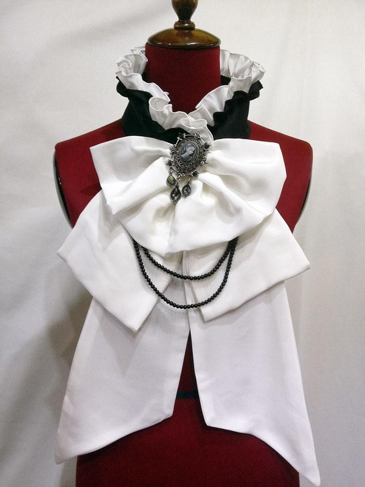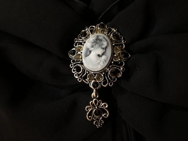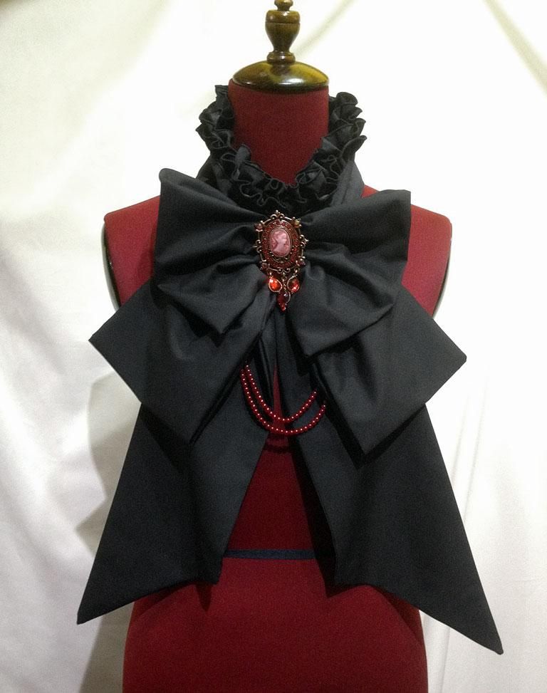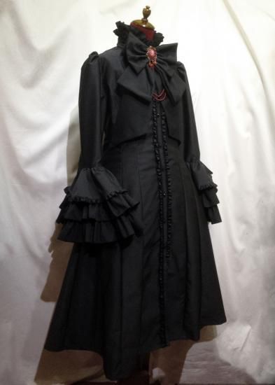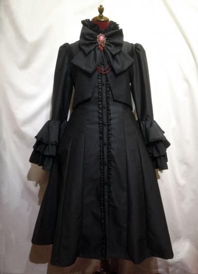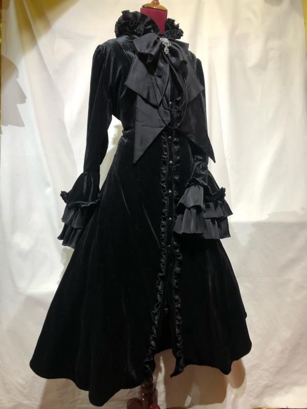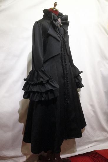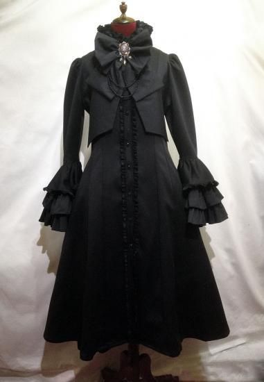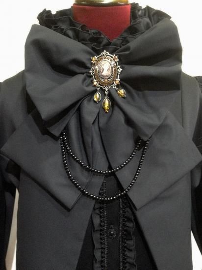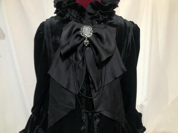 ・豪華なカメオブローチと2連のパールチェーンがついた華やかなリボンタイがエレガンスな高級感漂うゴシックエレガンスコートです。