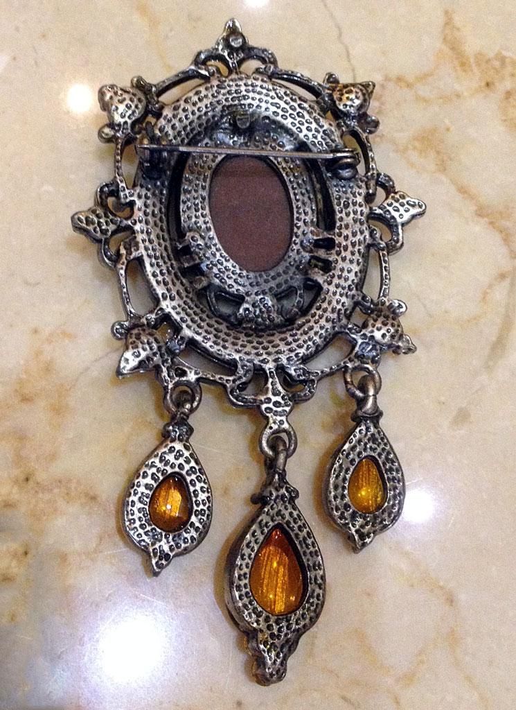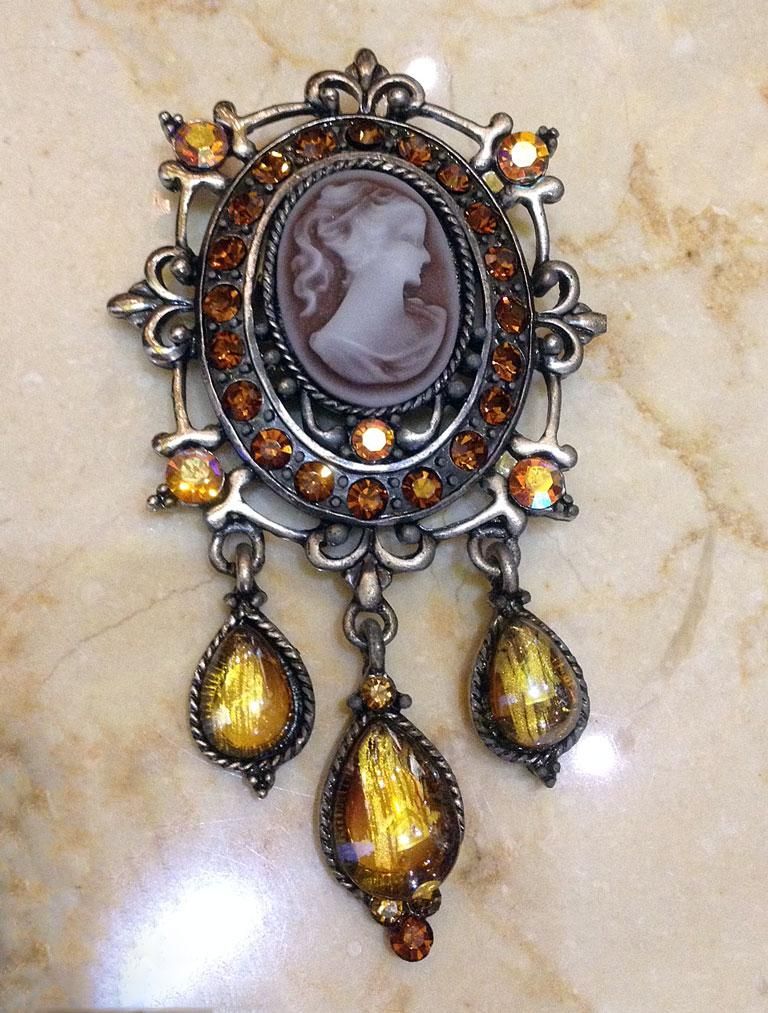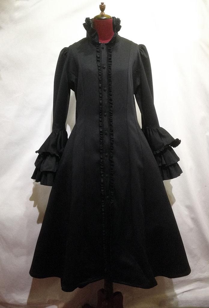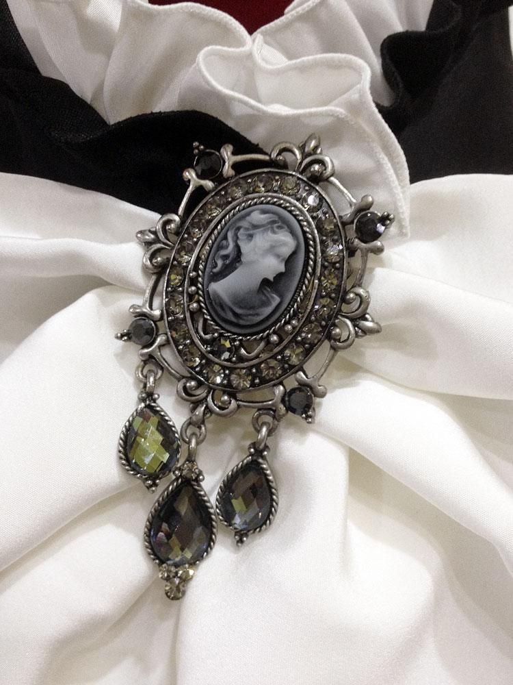 ・豪華なカメオブローチがついた貴婦人調のシックなロングコート。