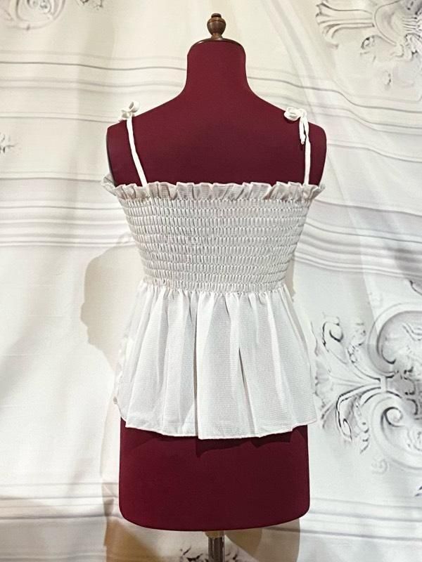 肩ひもリボンバラ付きシャーリングキャミソール