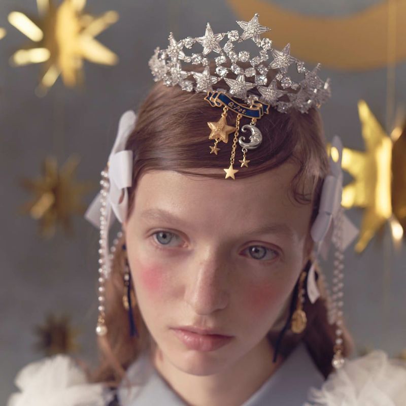 ネックレスチェーンにも星を散りばめ、胸元を華やかに彩ります。