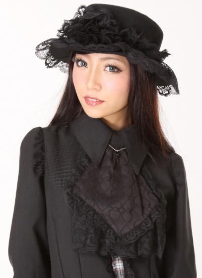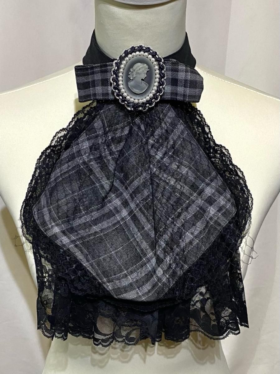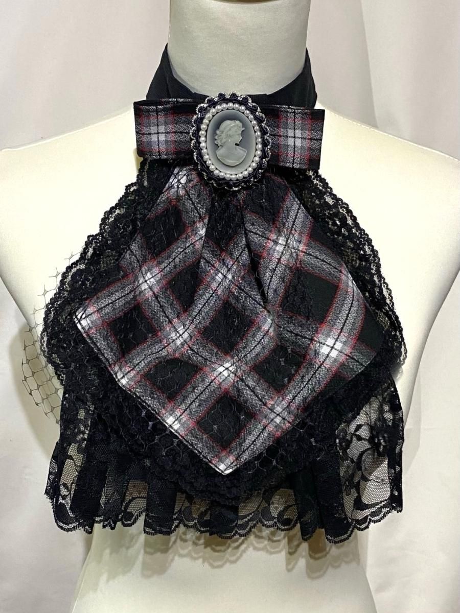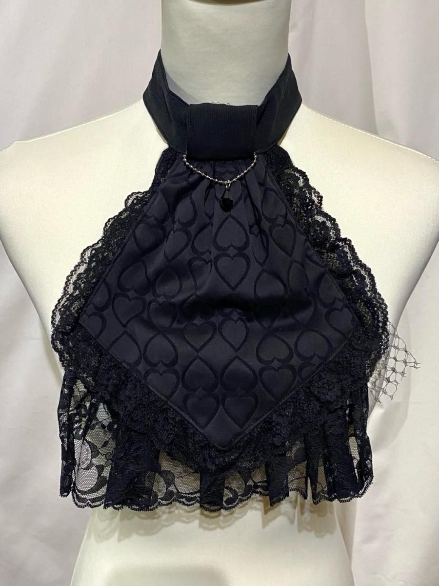★アンティーク調のカメオブローチでの華やかな着こなしと、黒ハート柄に黒しずくアクセサリーが付いたタイとして、リバーシブルの着回しが楽しめる2WAYタイ。