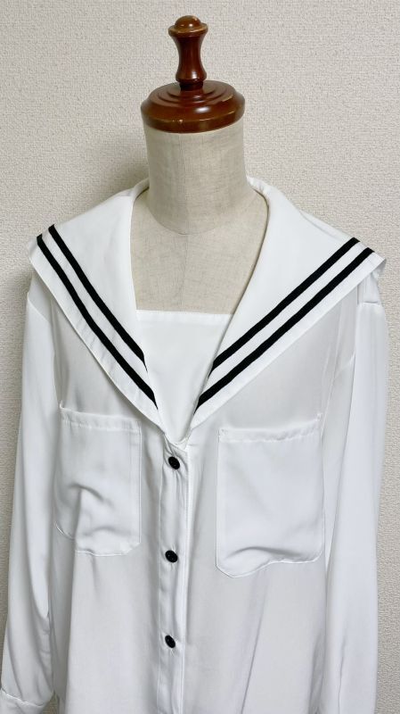 ボーイフレンドセーラーシャツ【白×黒ライン】