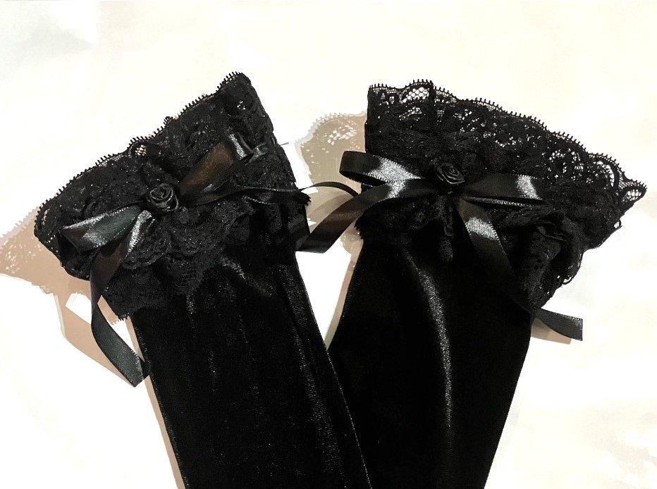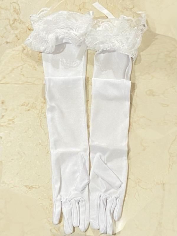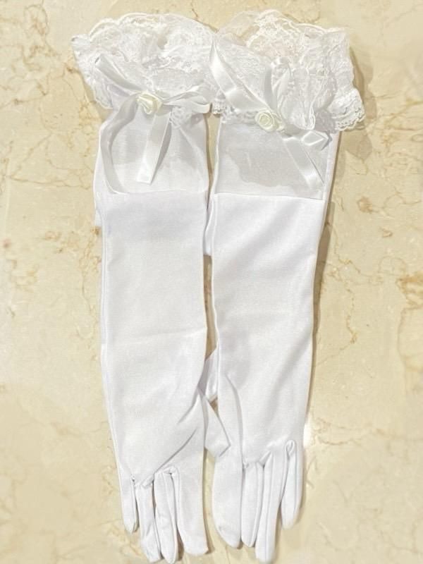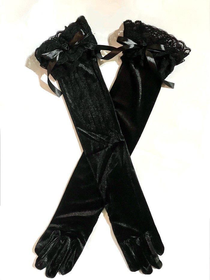 ★豪華なレースフリルと透け感のある小花柄の総レースがキュートで袖先にはバラが付いたロマンティックな手袋です。