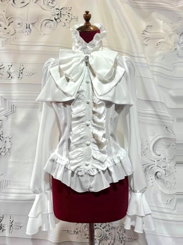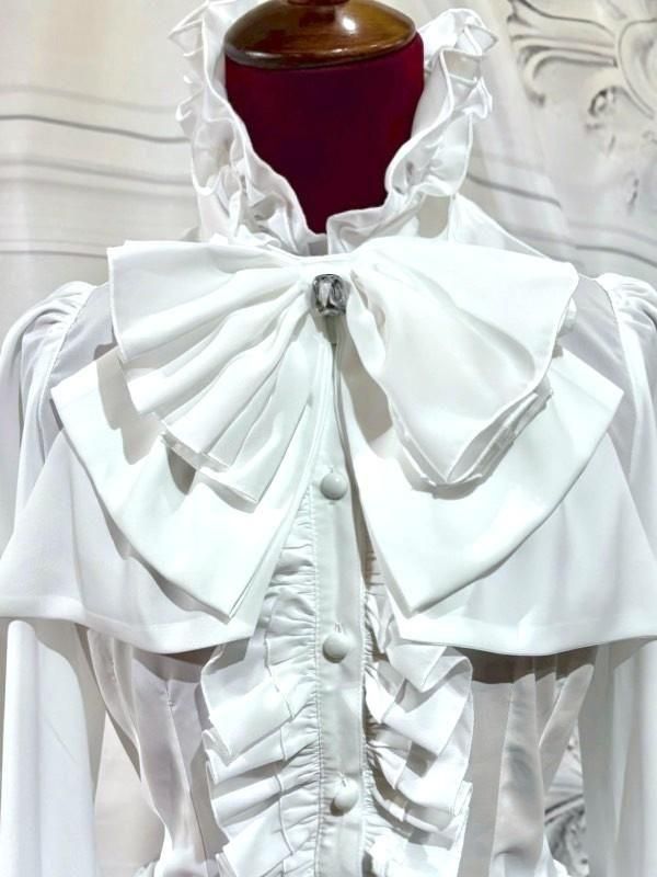 ◆Lサイズ◆ビジュー付きリボンタイフリルブラウス
