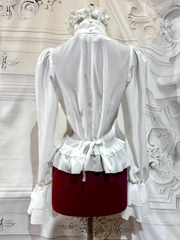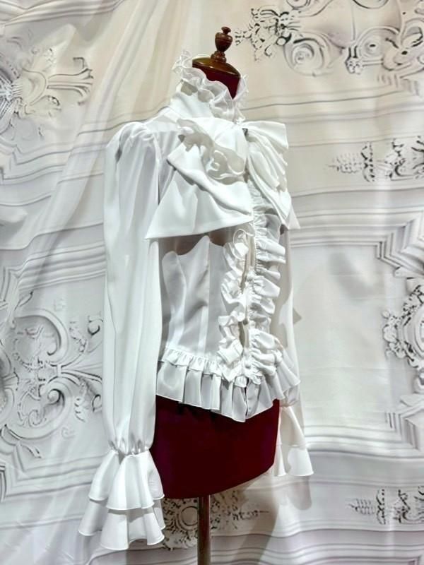 ★やわらかなフリルリボンのタイが豪華なブラウスです。