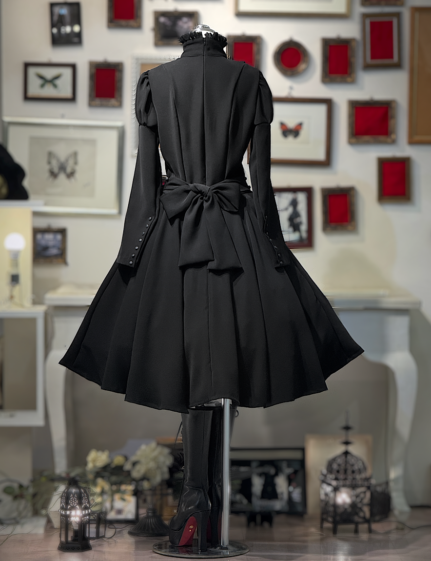 【サイズ(cm)】 バスト 89.5 ウエスト 66.5 袖幅(パフスリーブ下)30 肩幅 34 首周り 36 着丈 105 上見頃丈(襟含まず)43.5 スカート丈 61 袖丈 60 ※サイズは前後する場合がございます 目安としてお考えください |