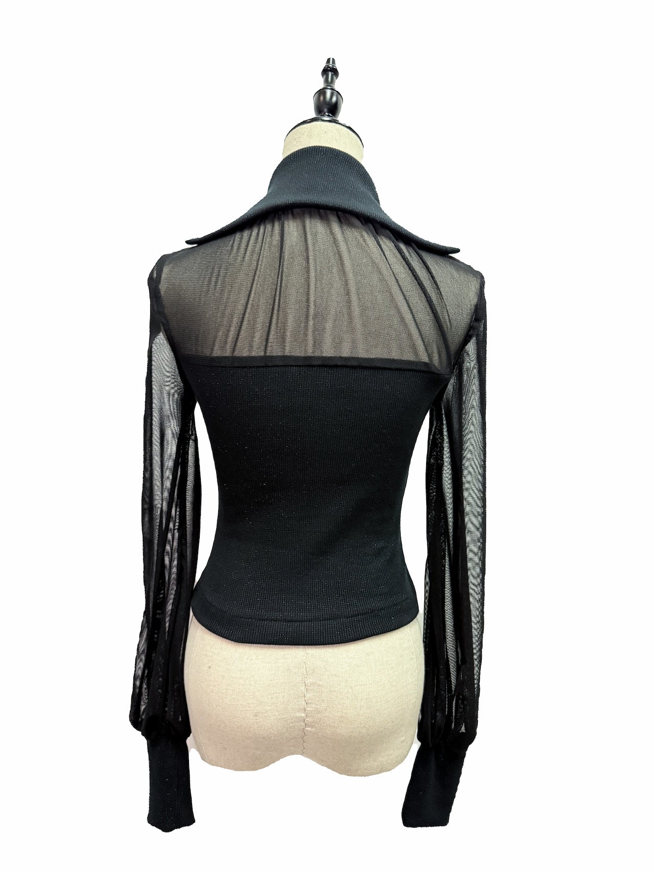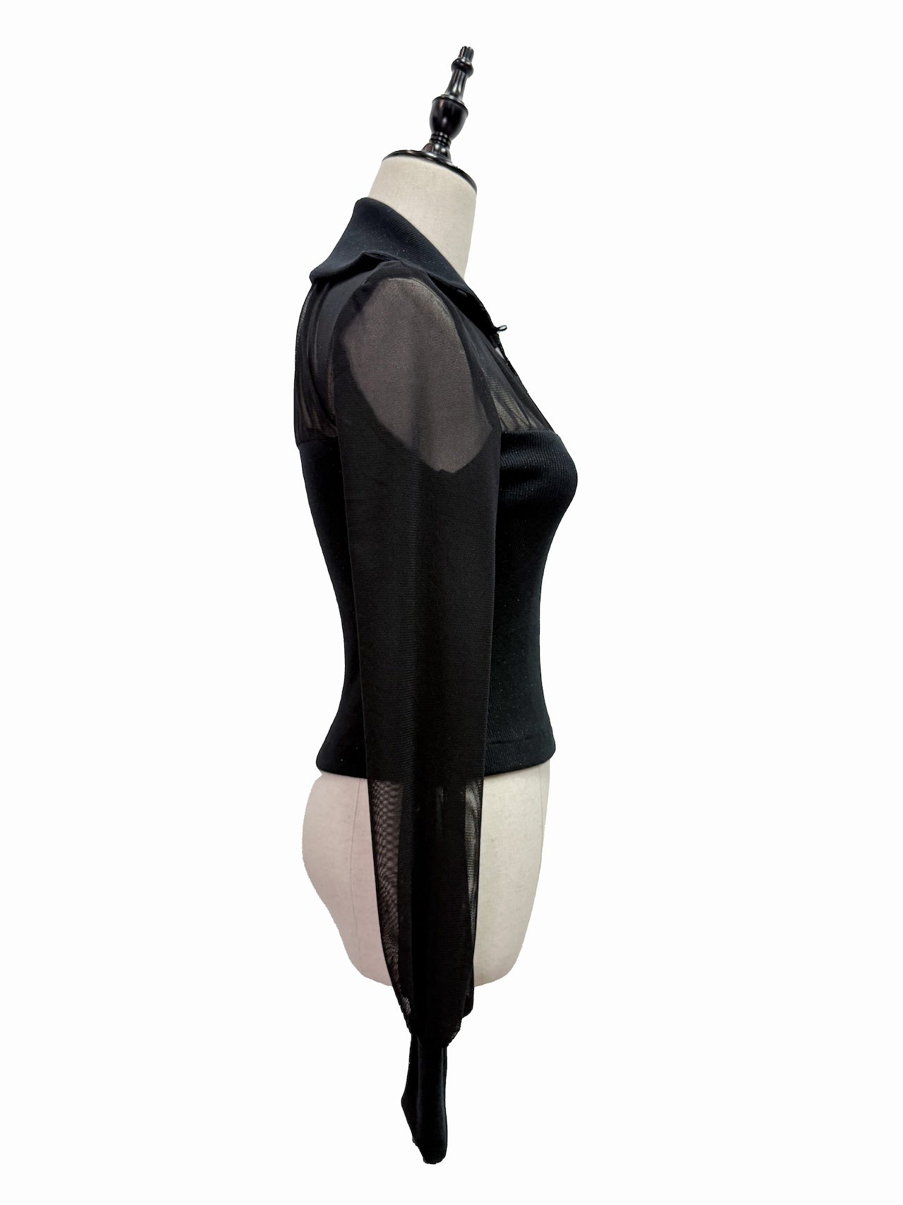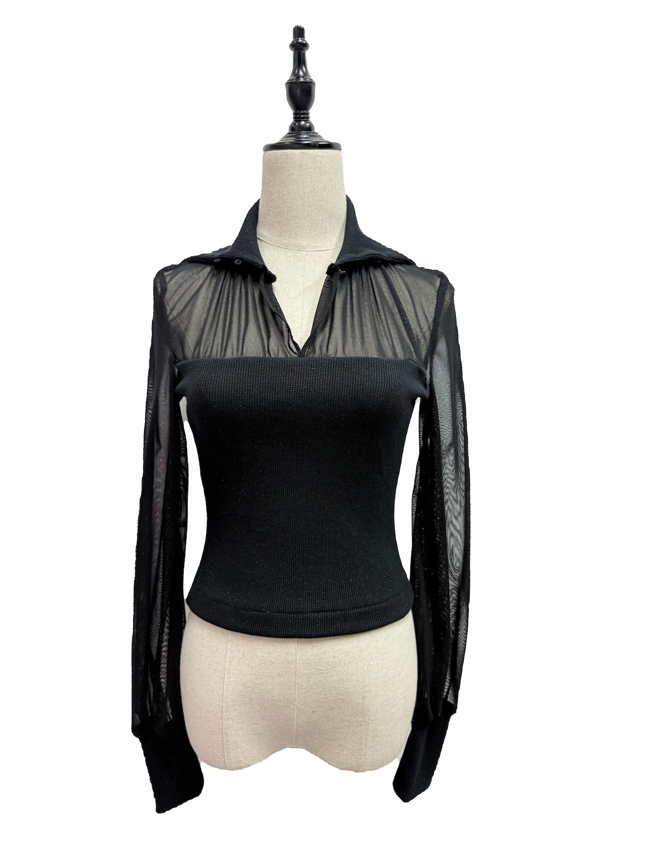 柔らかいネット生地とリブ生地をドッキングさせたトップス