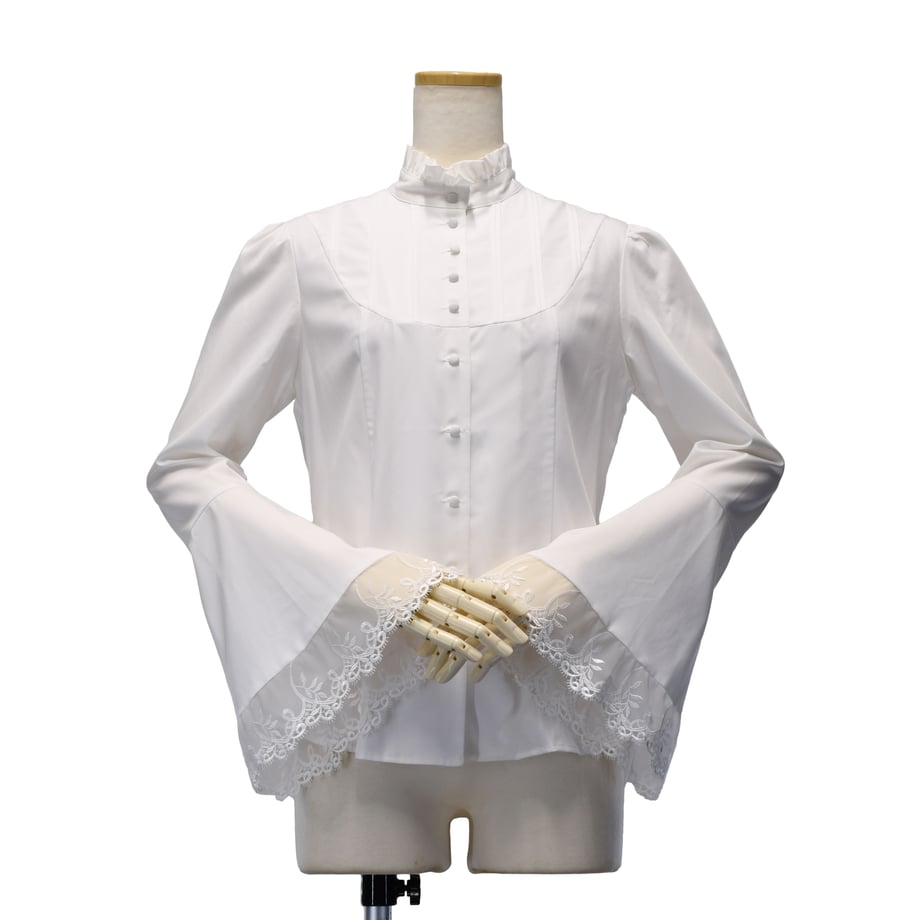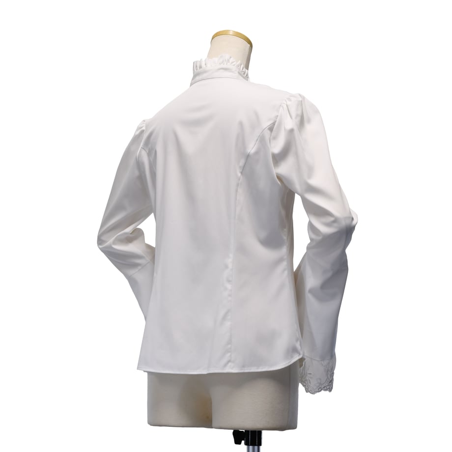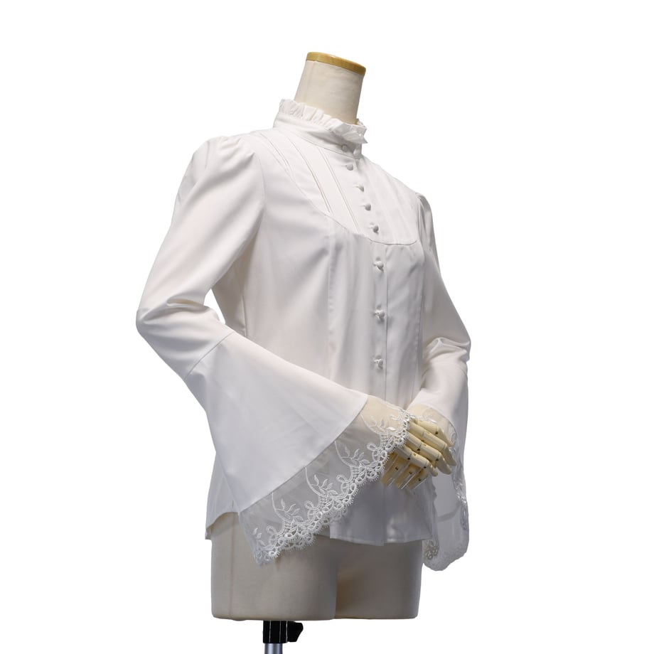 同シリーズの「Arcana クラシカルドレス」と合わせると、首元とお袖のレースが重なり合い、繊細な奥行きと物語性を生むセットアップに。