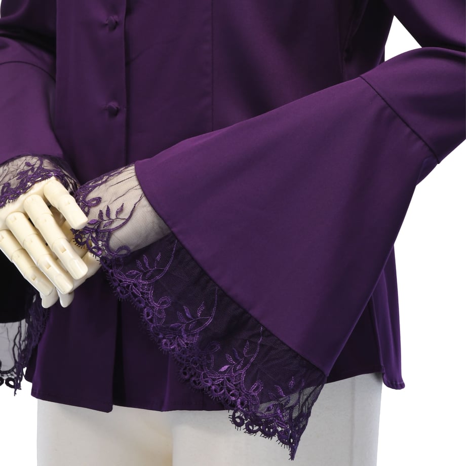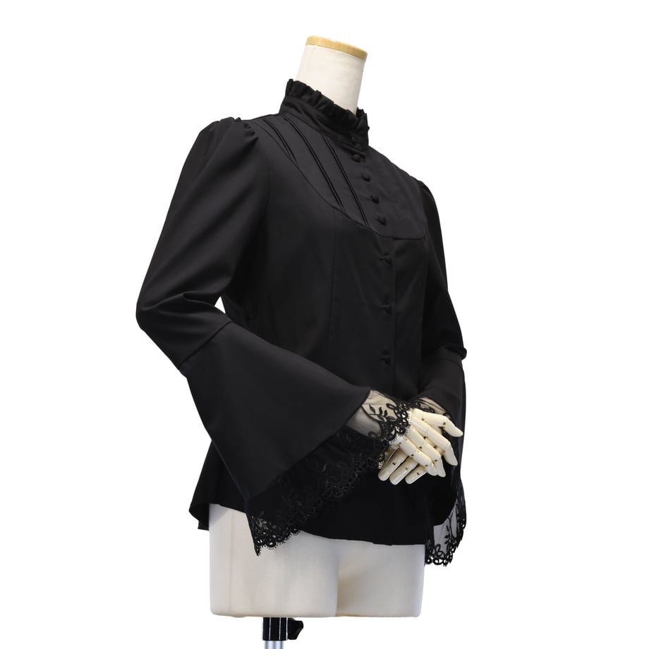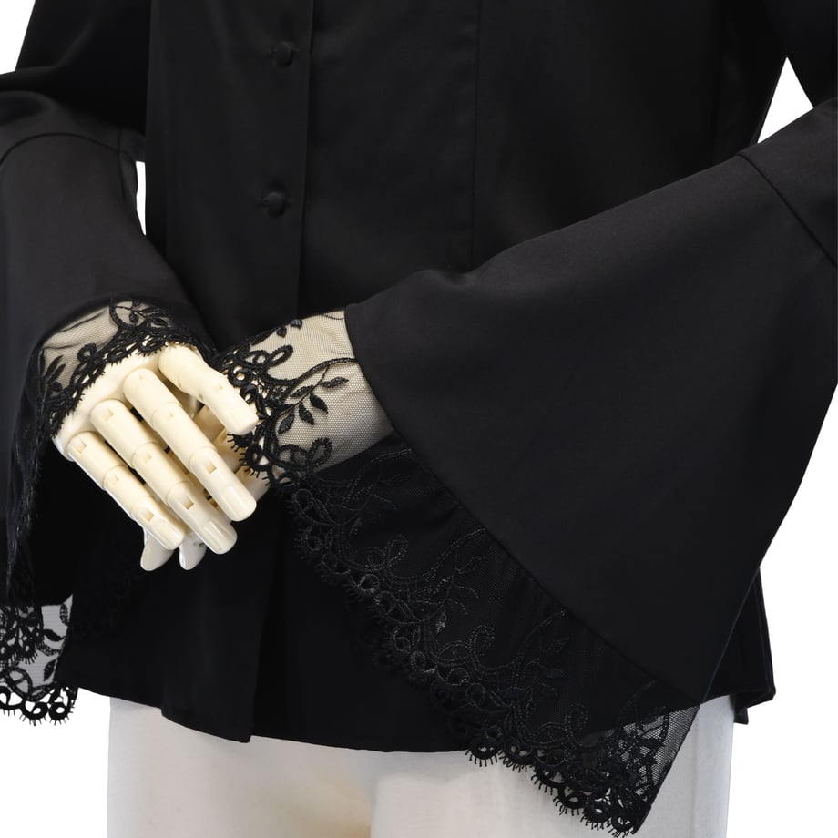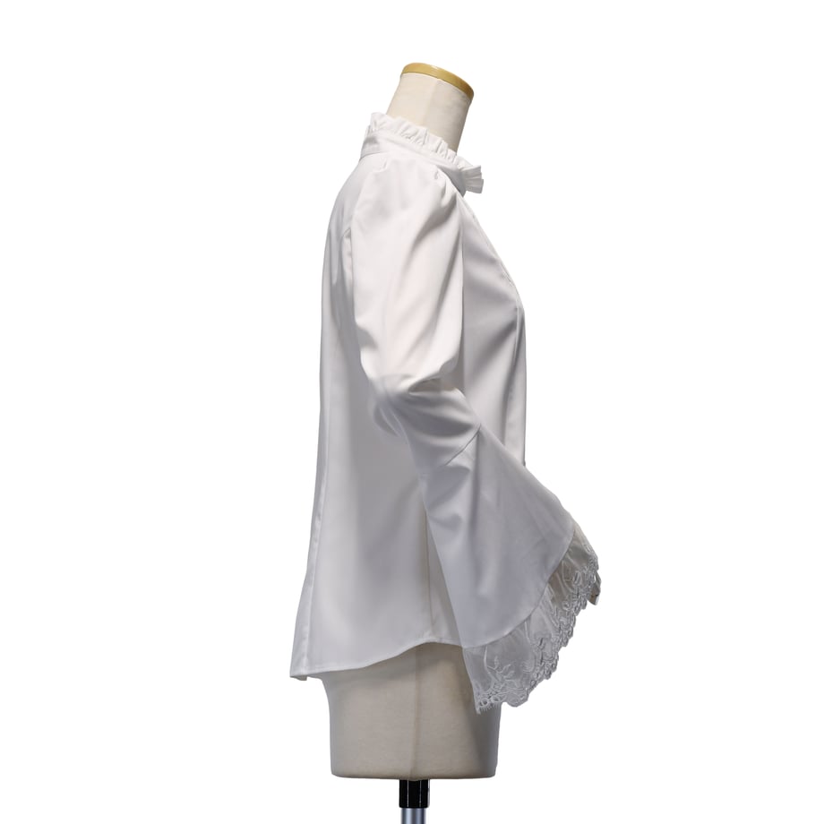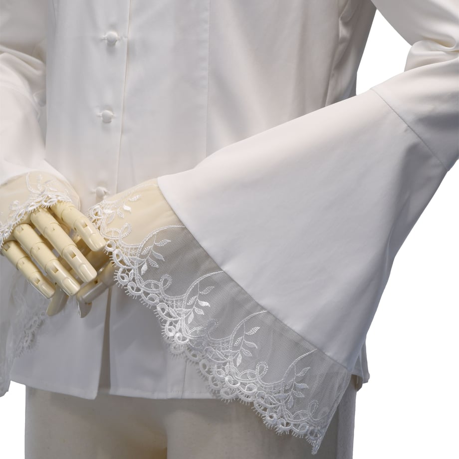 袖口にあしらわれたレースが、控えめな姫袖のラインと相まって上品に揺れ、静かな存在感を放ちます。