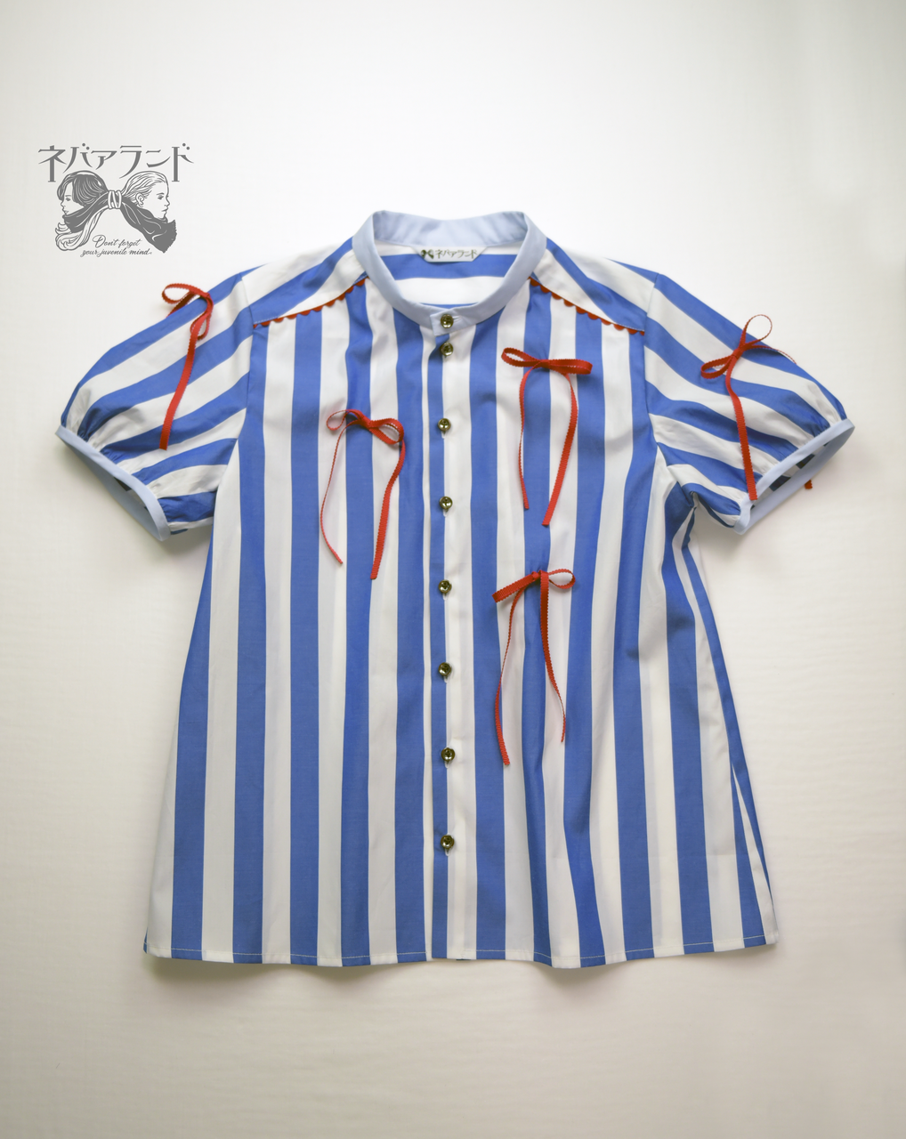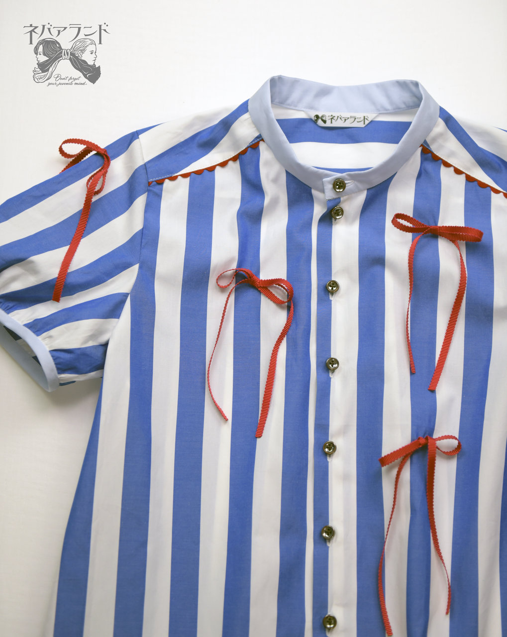 すとんとしたシルエットを、水色のバンドカラーがきりっと引き締めます。