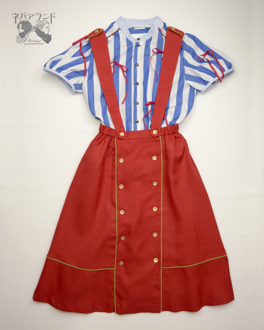 身頃や袖口に揺れる赤いリボンが、着こなしのポイントに。