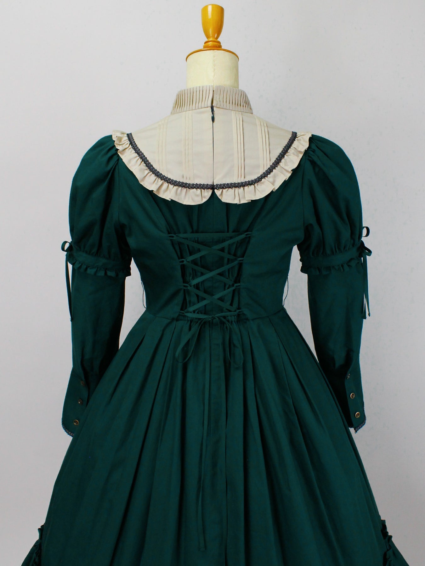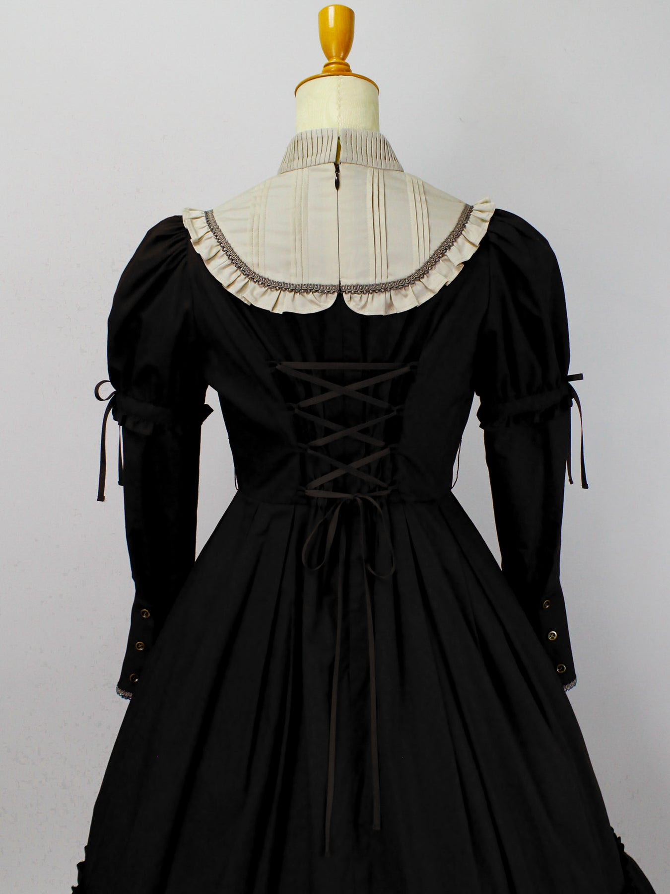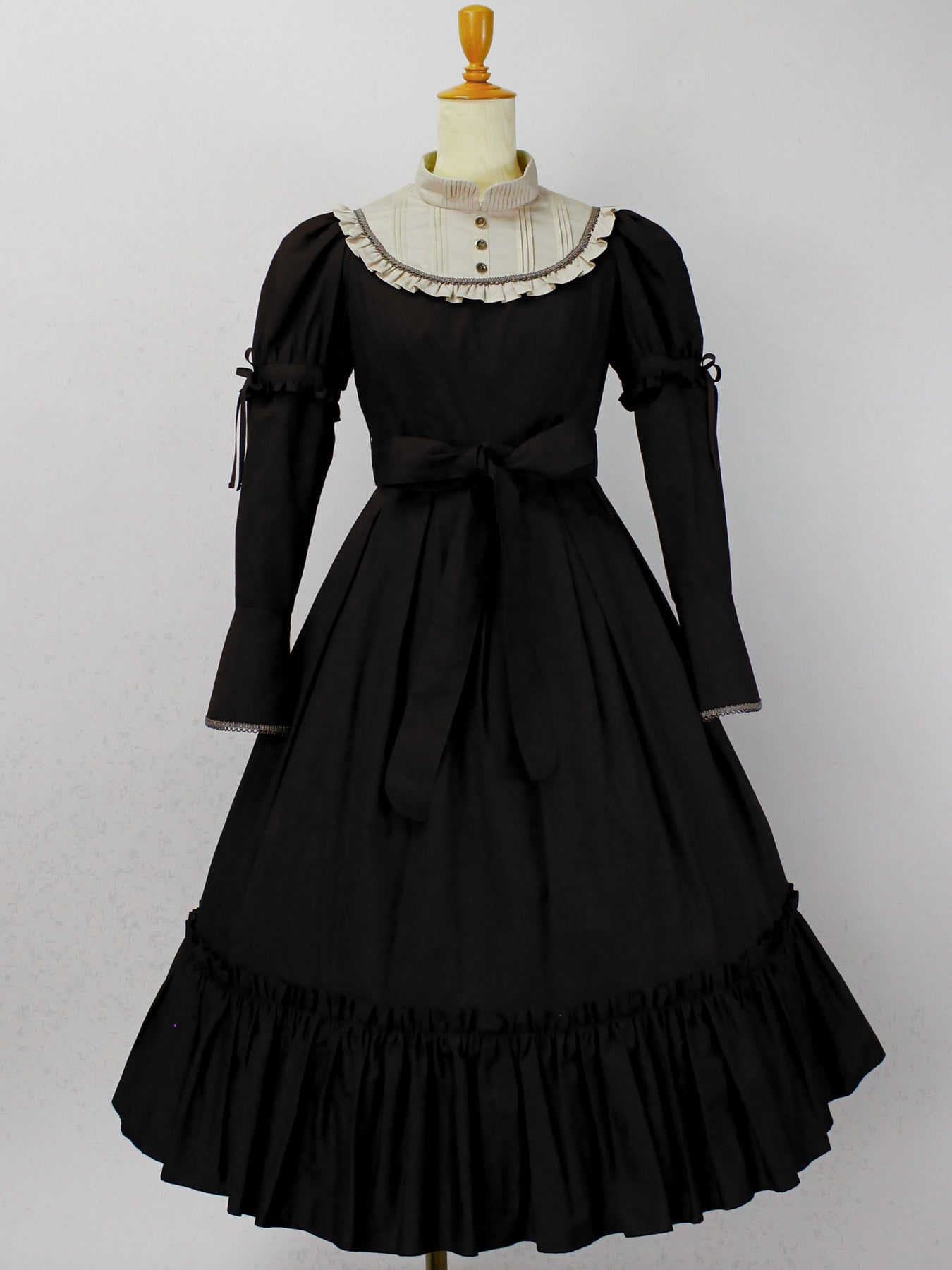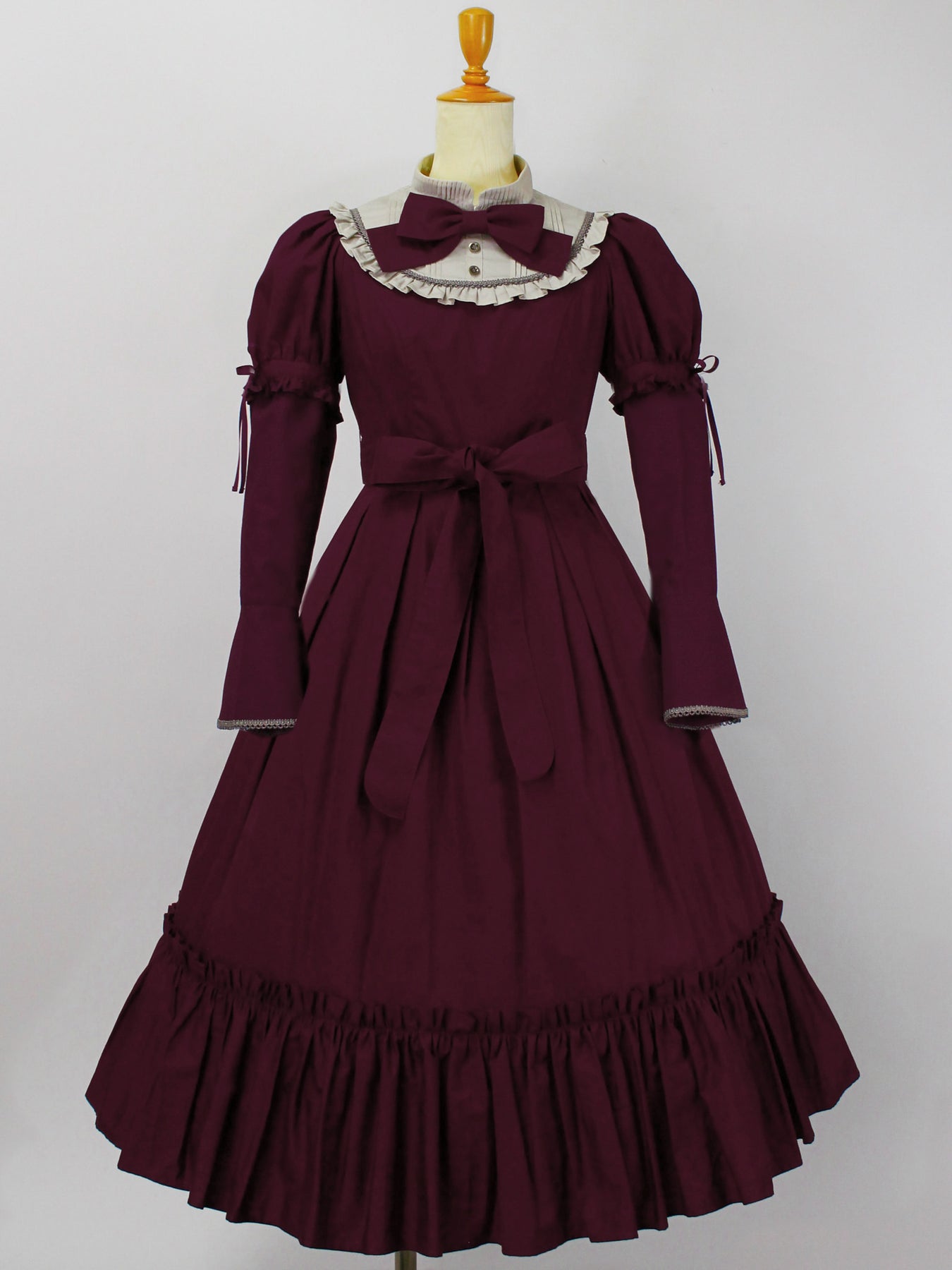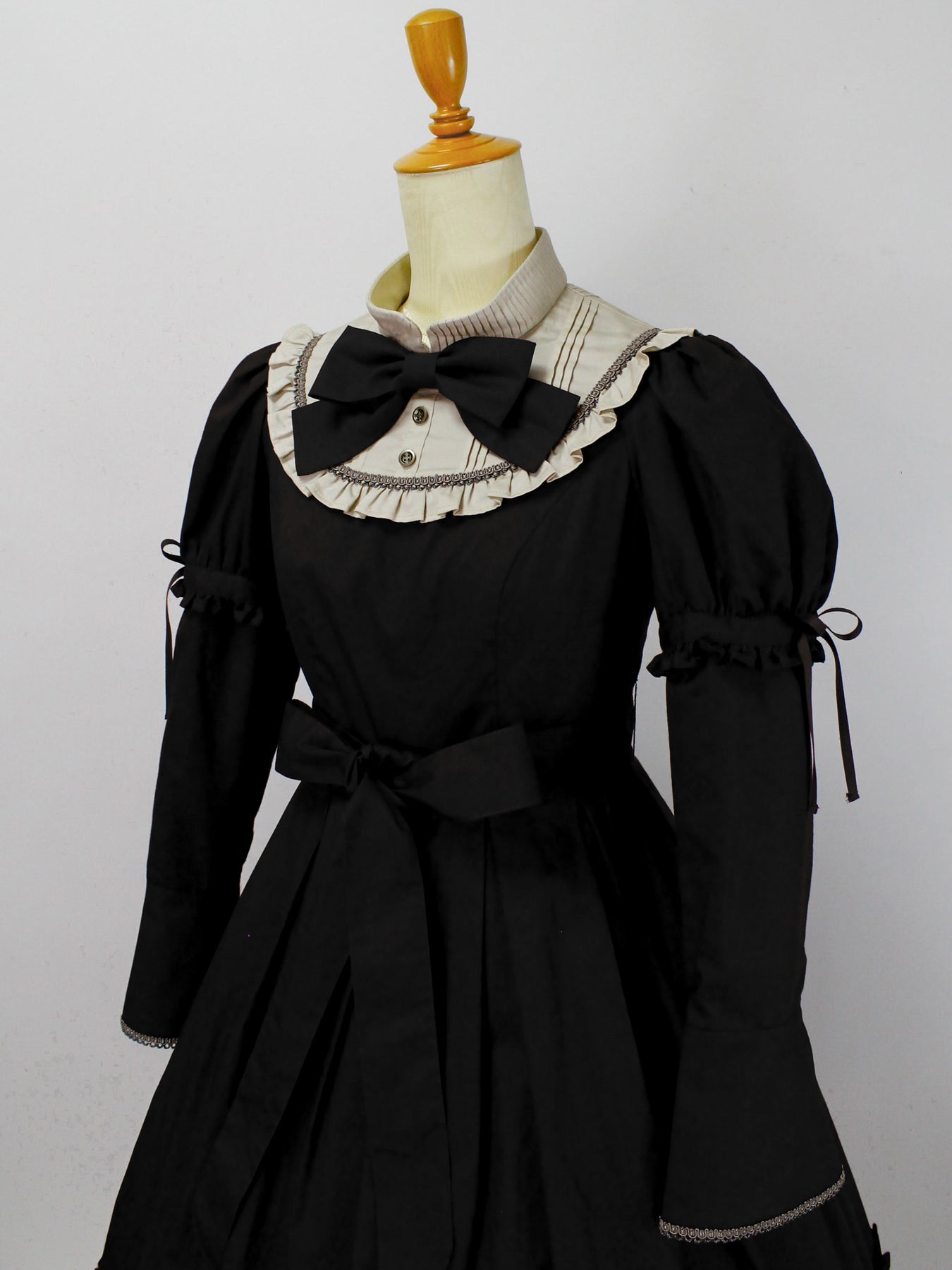 胸元のリボンもブローチピンにて取り外しが可能になっており、お袖やリボンの取り外しによって異なる雰囲気の装いに。
