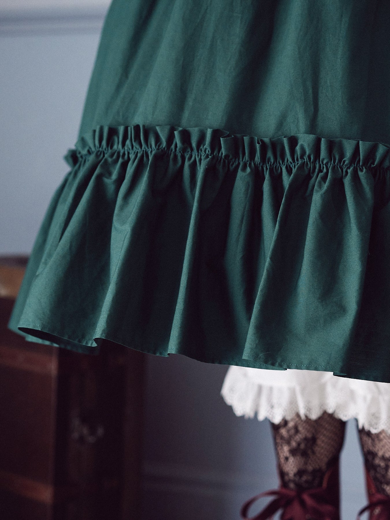 微光沢感が放つ控えめな輝きは、Victorin maidenの定番ともいえる綿サテン素材。