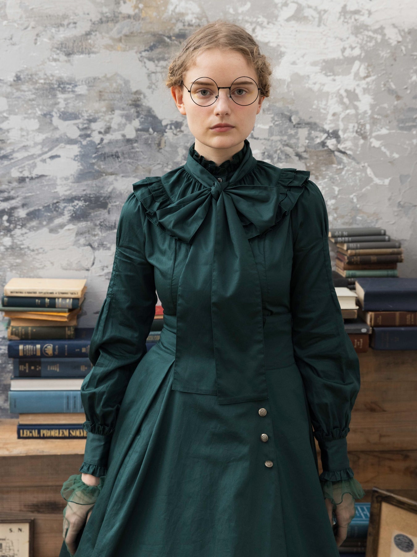 深い深いグリーンにフォーカスしたビジュアルLOOKは、纏うことにより瞬間(とき)を超えて戸惑いと高揚感溢れる”エメラルドの国”へと誘います。