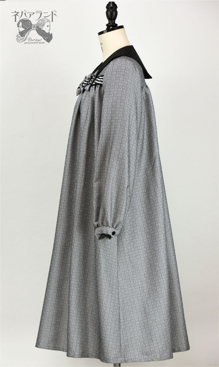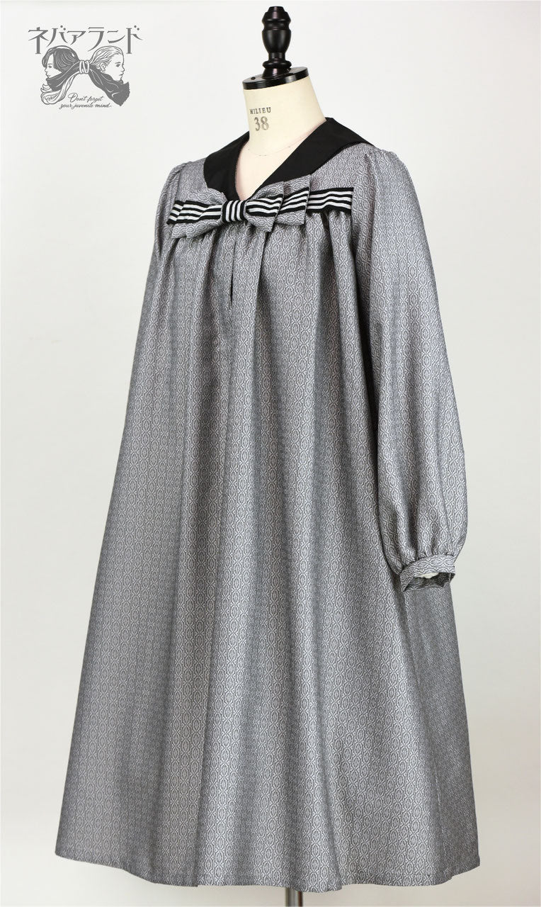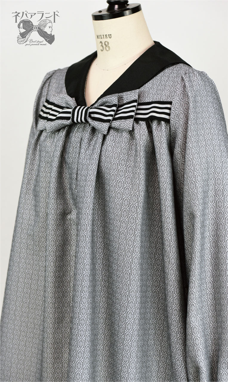 リボンと切替部分に飾った、ストライプのグログランリボンが全体をきりっと引き締めます。