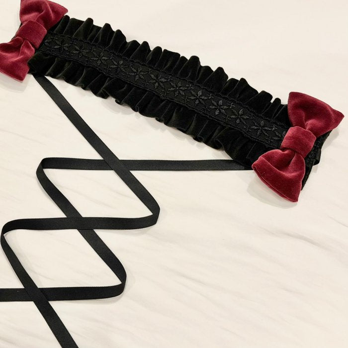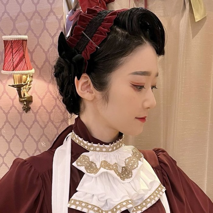 上質な別珍素材に立体的なリボンを配したクラシカルかつドーリーな雰囲気のヘッドドレス