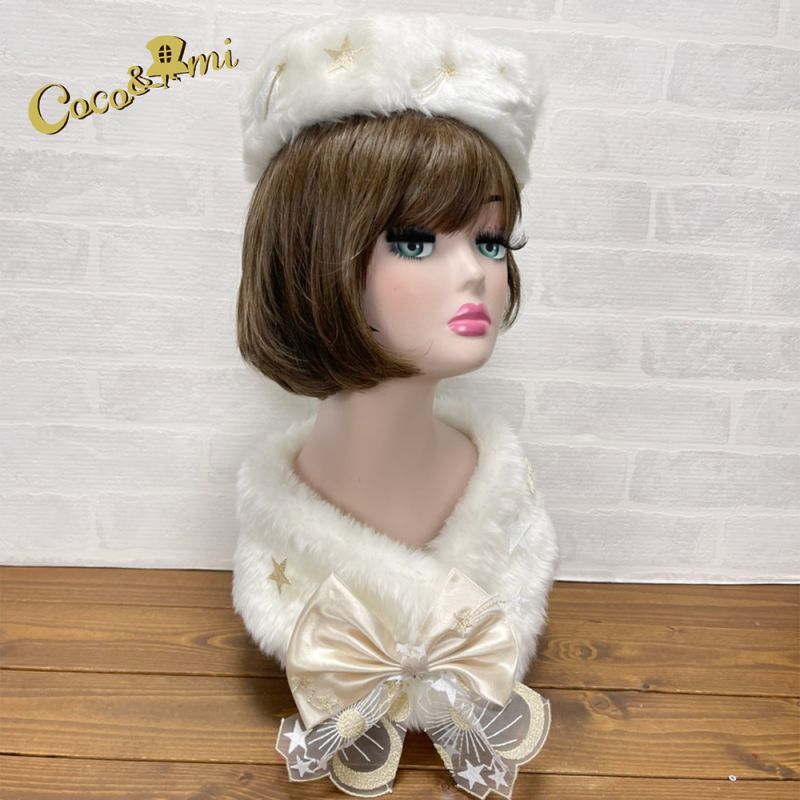 ・ファーに乗っている星のパーツは刺繍ではなく、刺繍テキスタイルを切り取ったものを縫いとめた仕様になります。