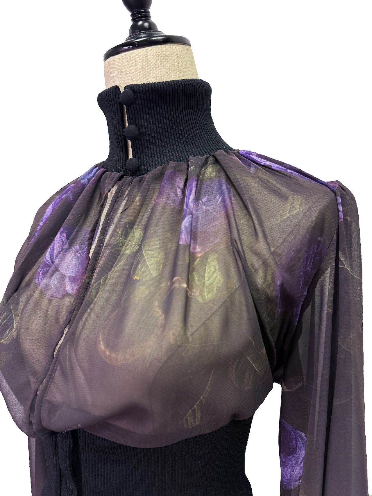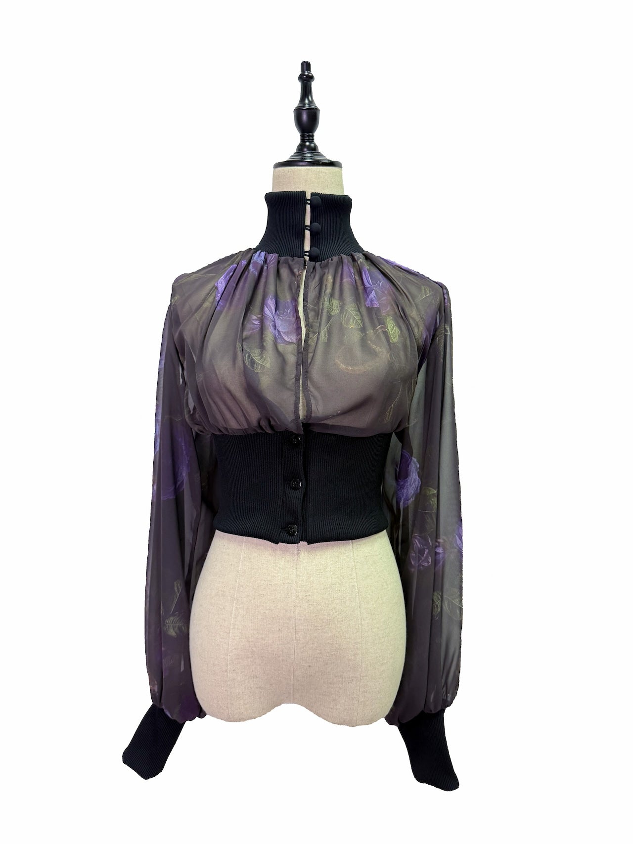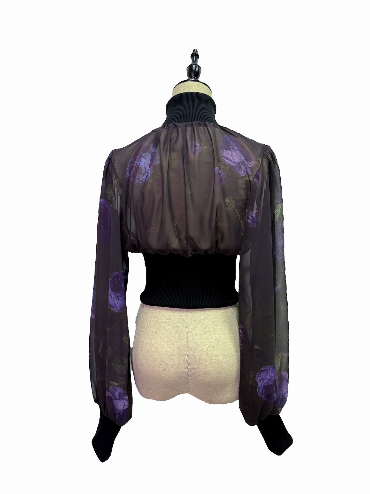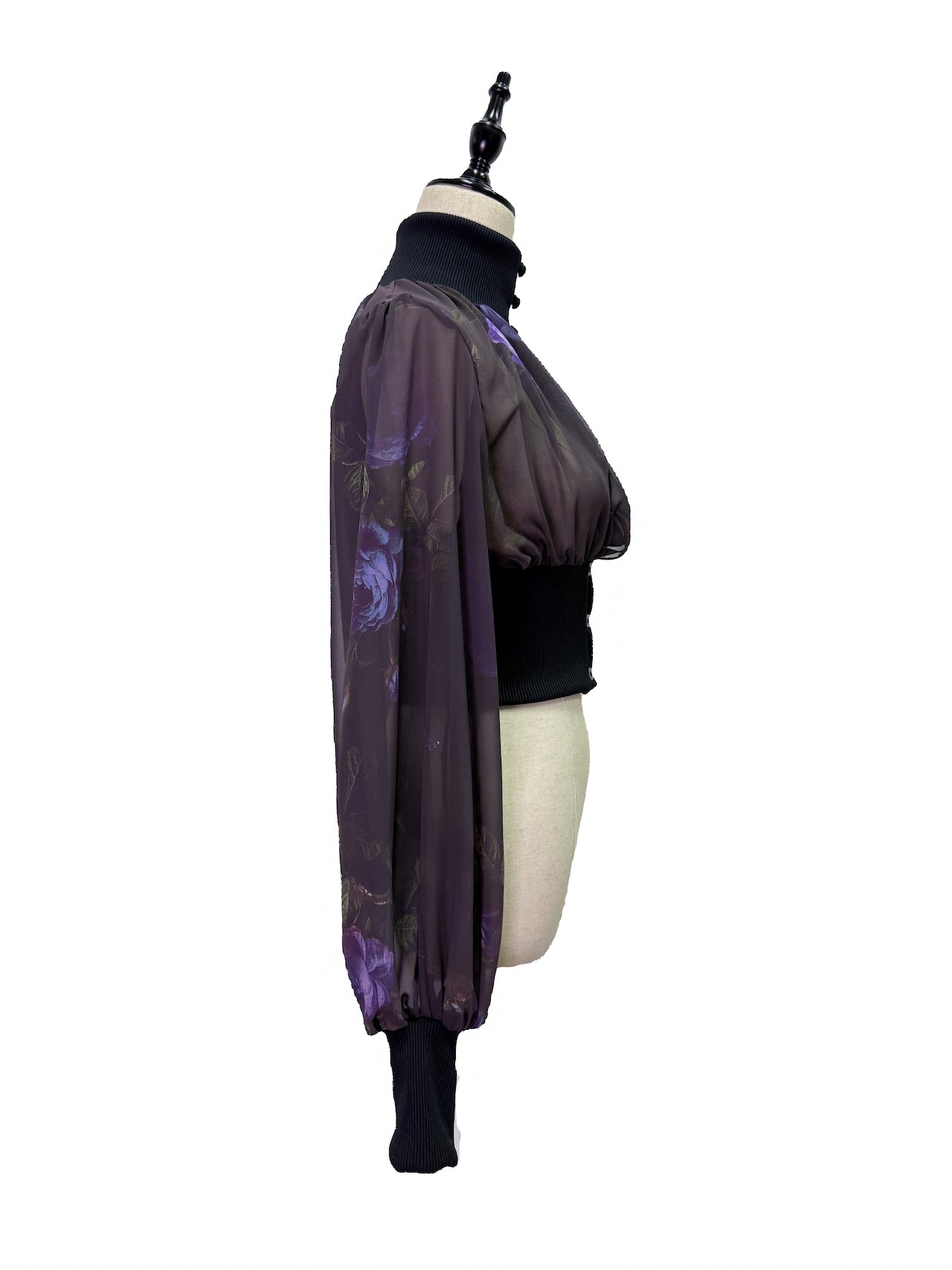 ブラックシフォンに加えて、オリジナルプリントのパープルローズ柄もございます。