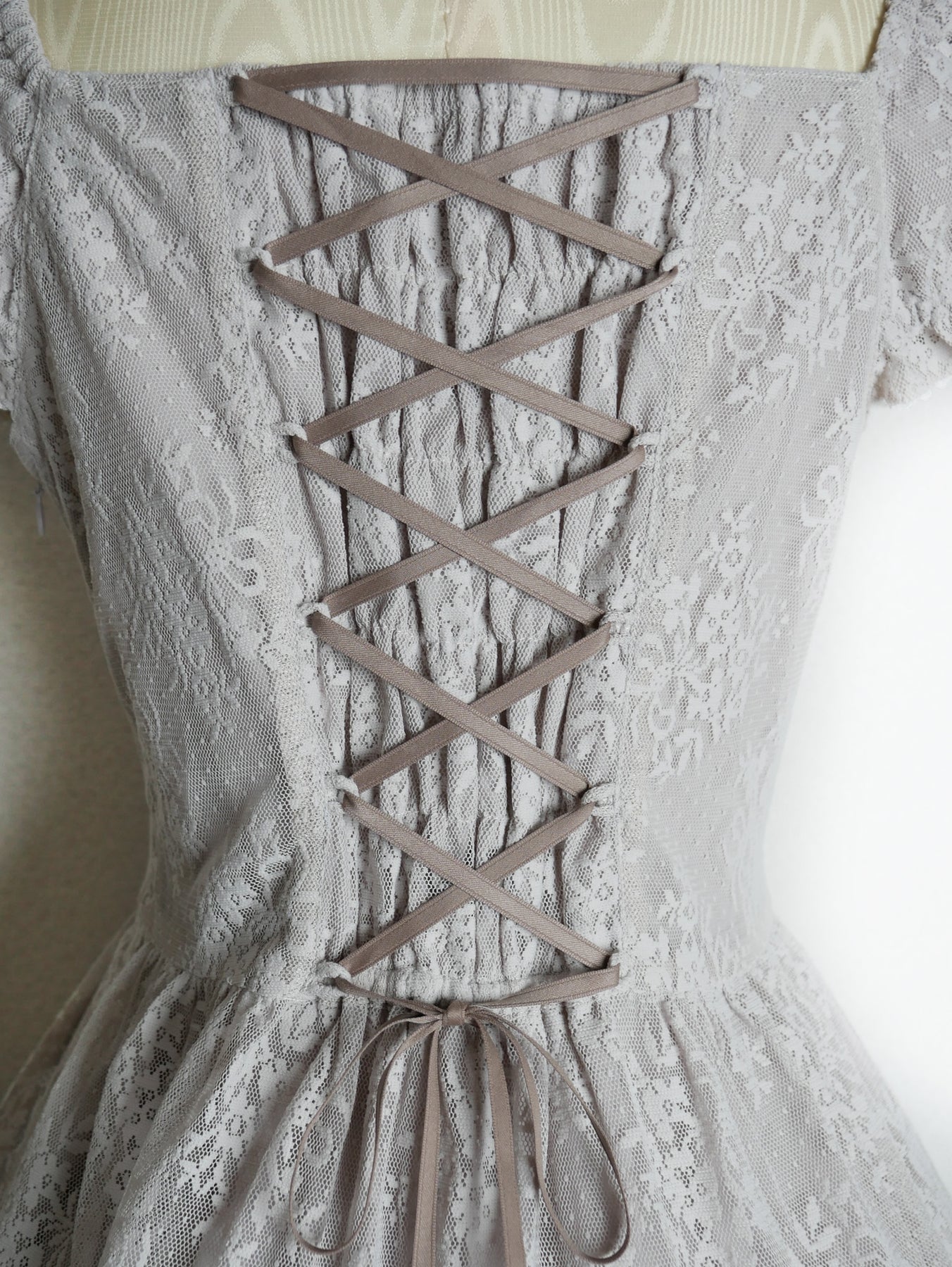付属のリボンにはドレスと同素材のレースを使用し、寂しく見える胸元に華やかさを添えてくれます。
