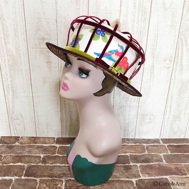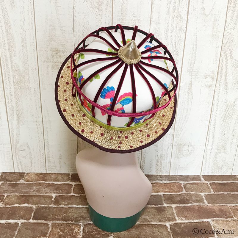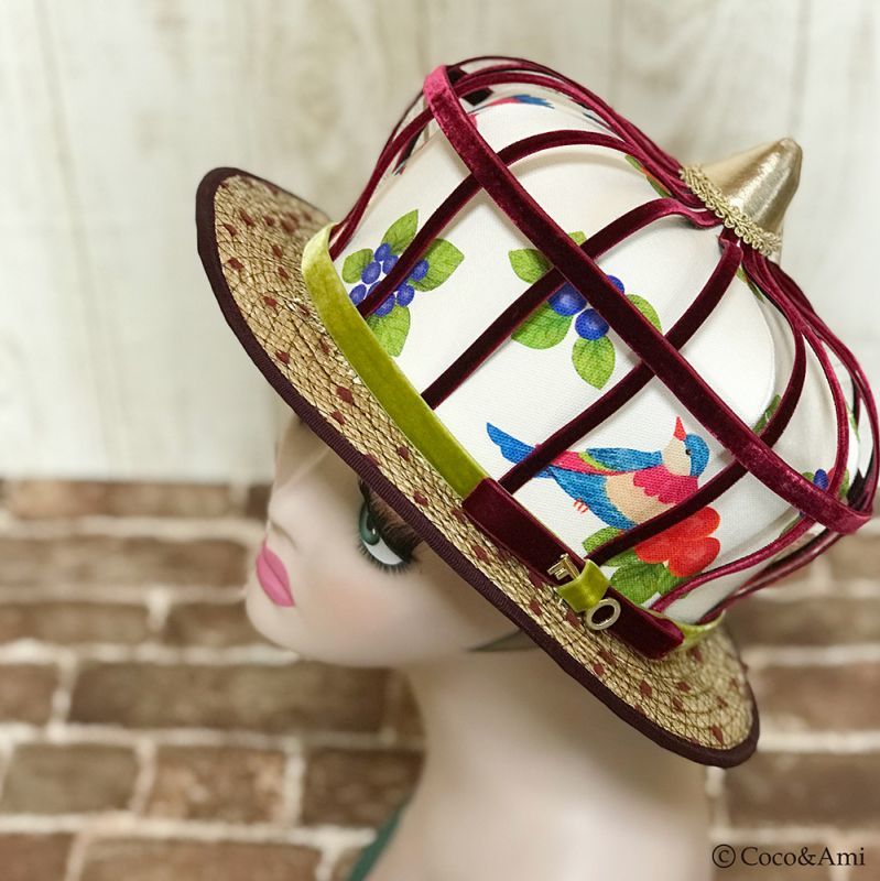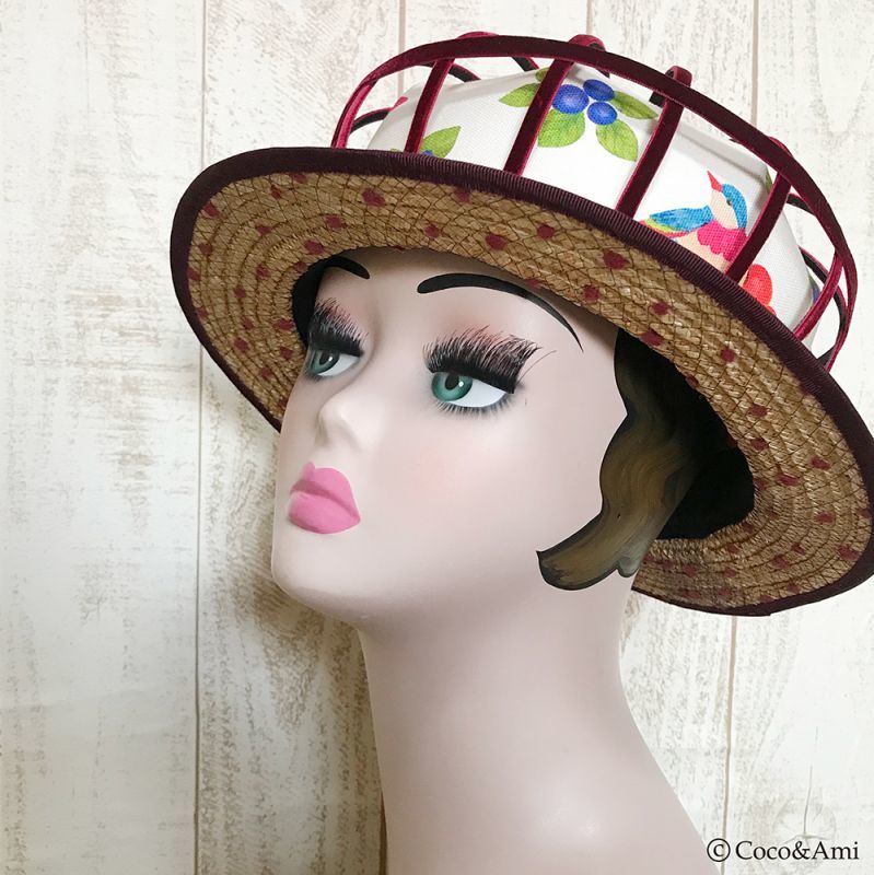 本体トップ:綿100% 本体ブリム:天然草 裏地:綿100% |