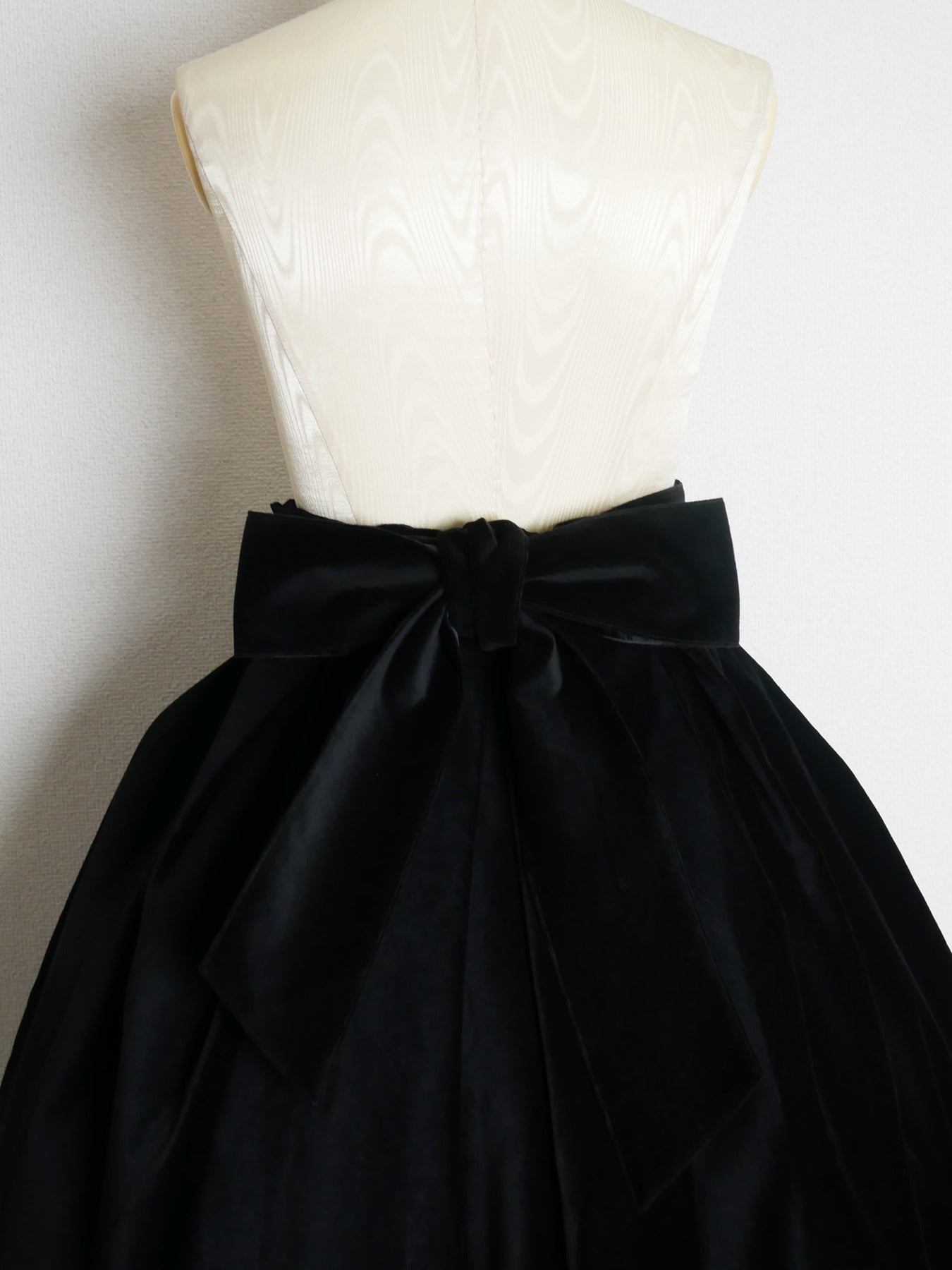 取り外し可能な腰紐は背面で大きなリボンを結んで華やかなアクセントとして楽しめるほか、肩に回してホルターネックジャンパースカート風にアレンジすることも可能です。