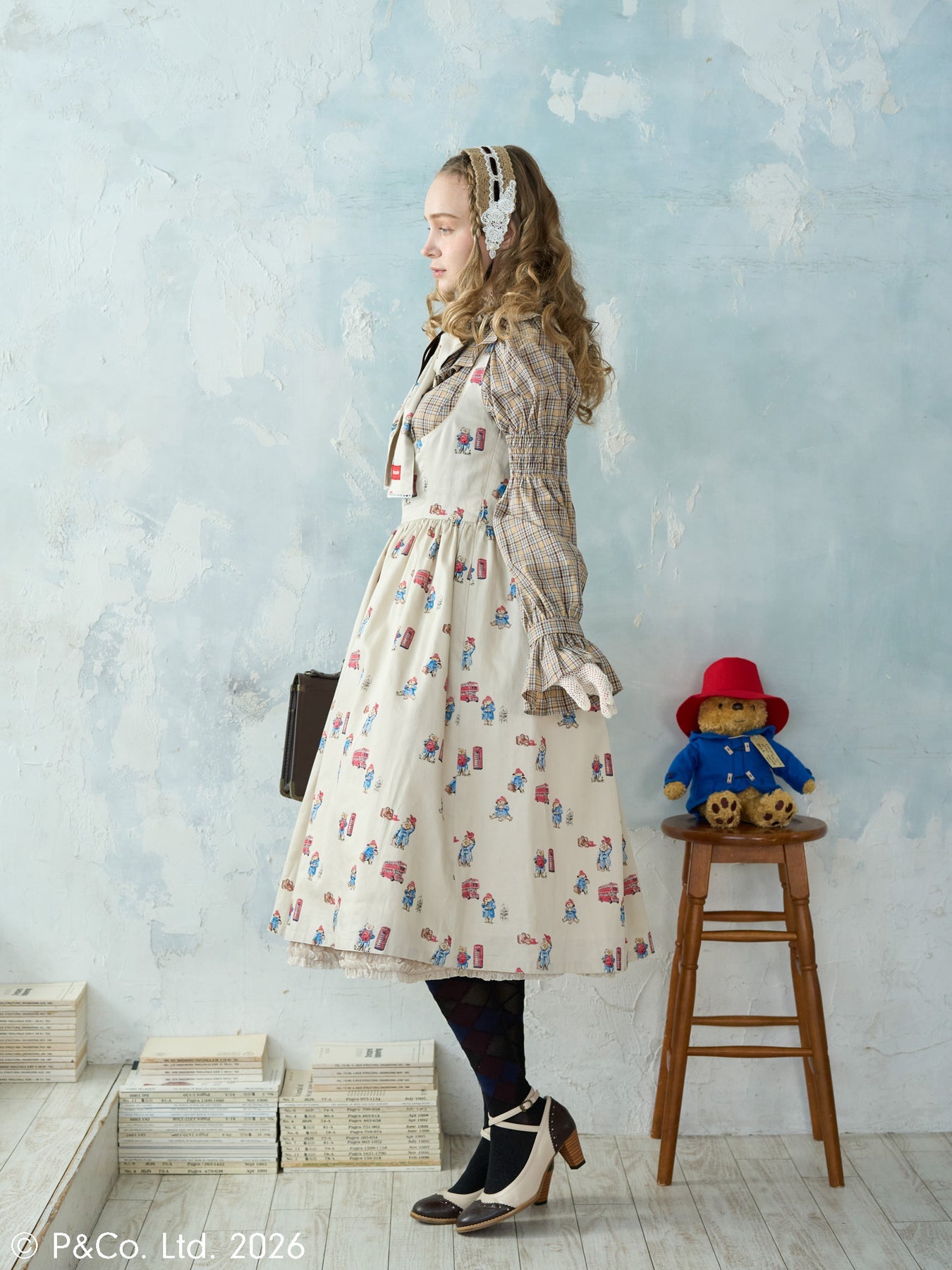 パディントン柄のブラウスとコーディネイトすることにより、ドレスを纏っているかのような統一感のある装いが完成します。