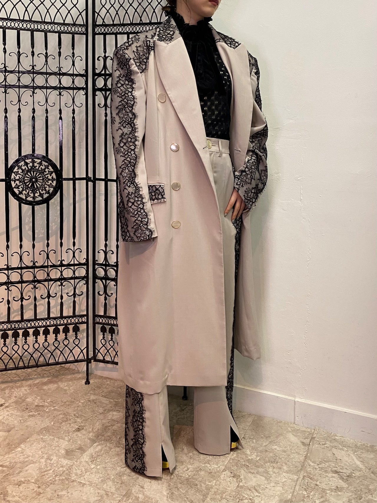 繊細なリバーレースが贅沢に施された一重のコート
