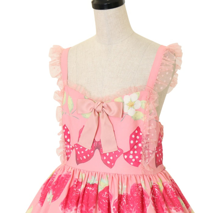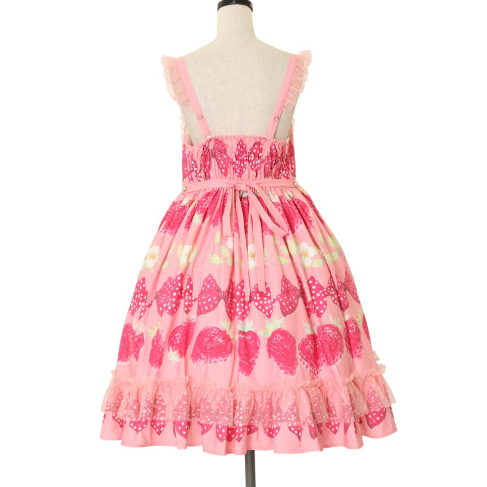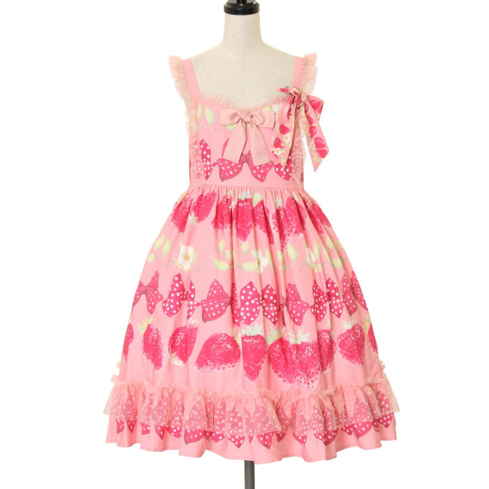 【USED】【Lサイズ】Strawberry ジャンパースカート + リボンクリップセット