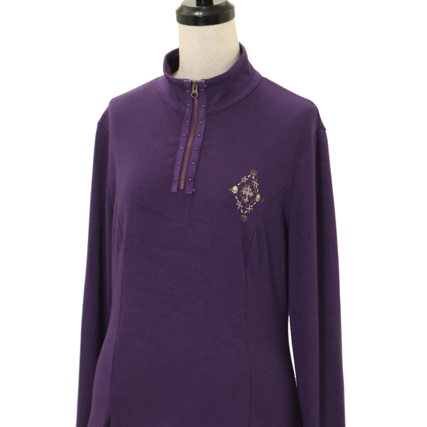 【USED】croce スカルクロス刺繍ハイネックジップカットソー