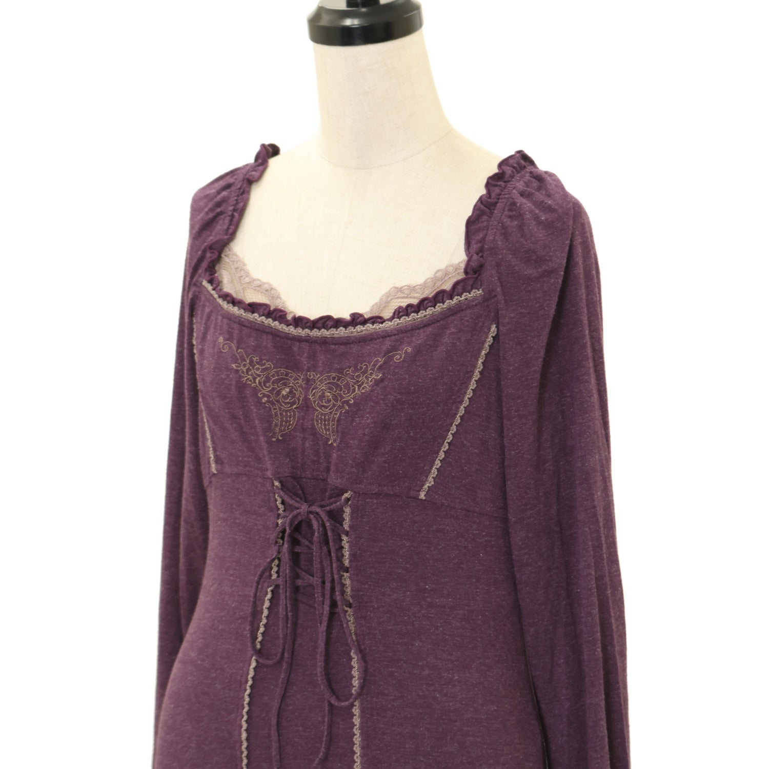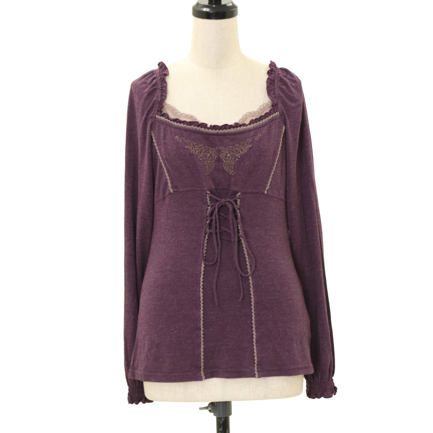【USED】ANGELO 刺繍入りレースアップカットソー