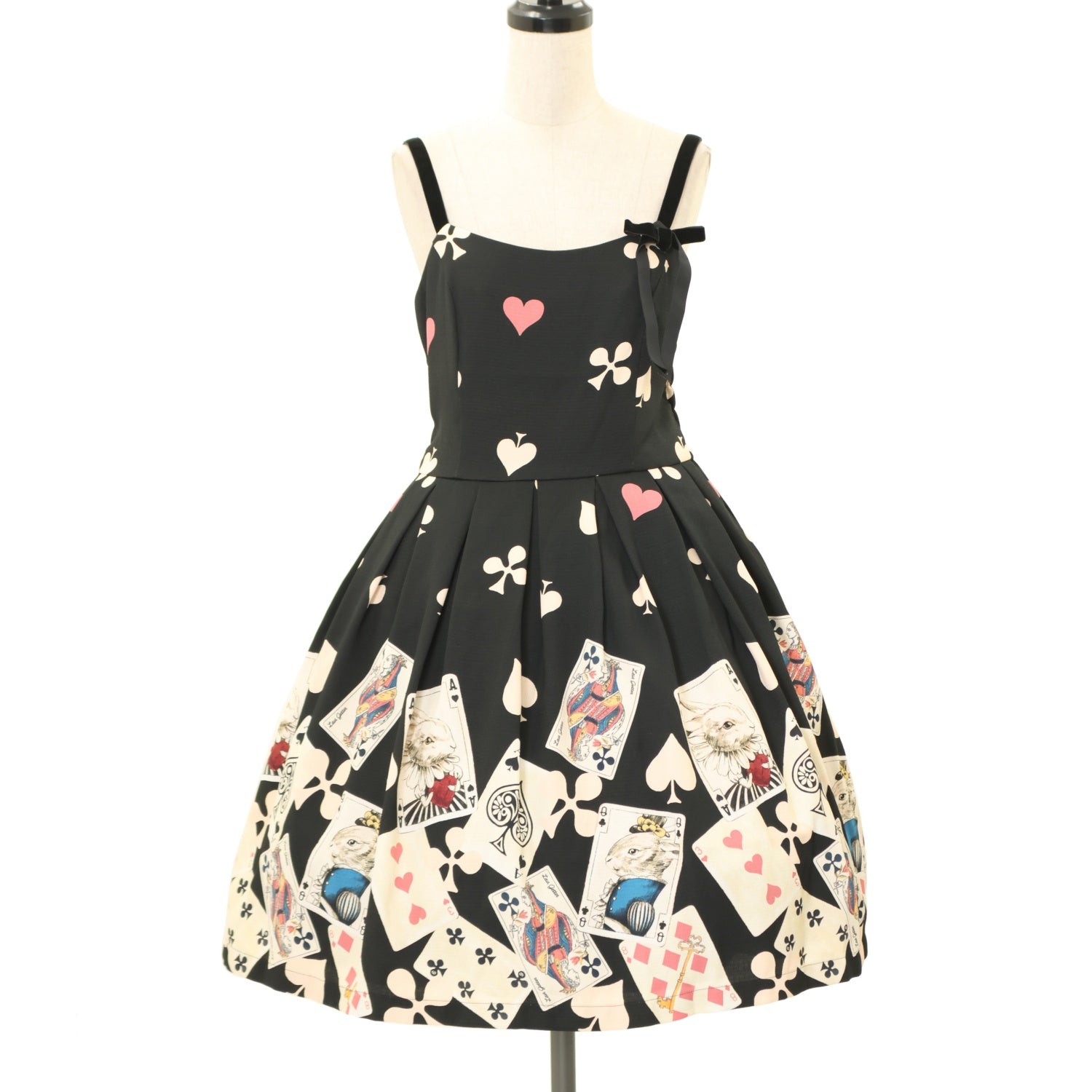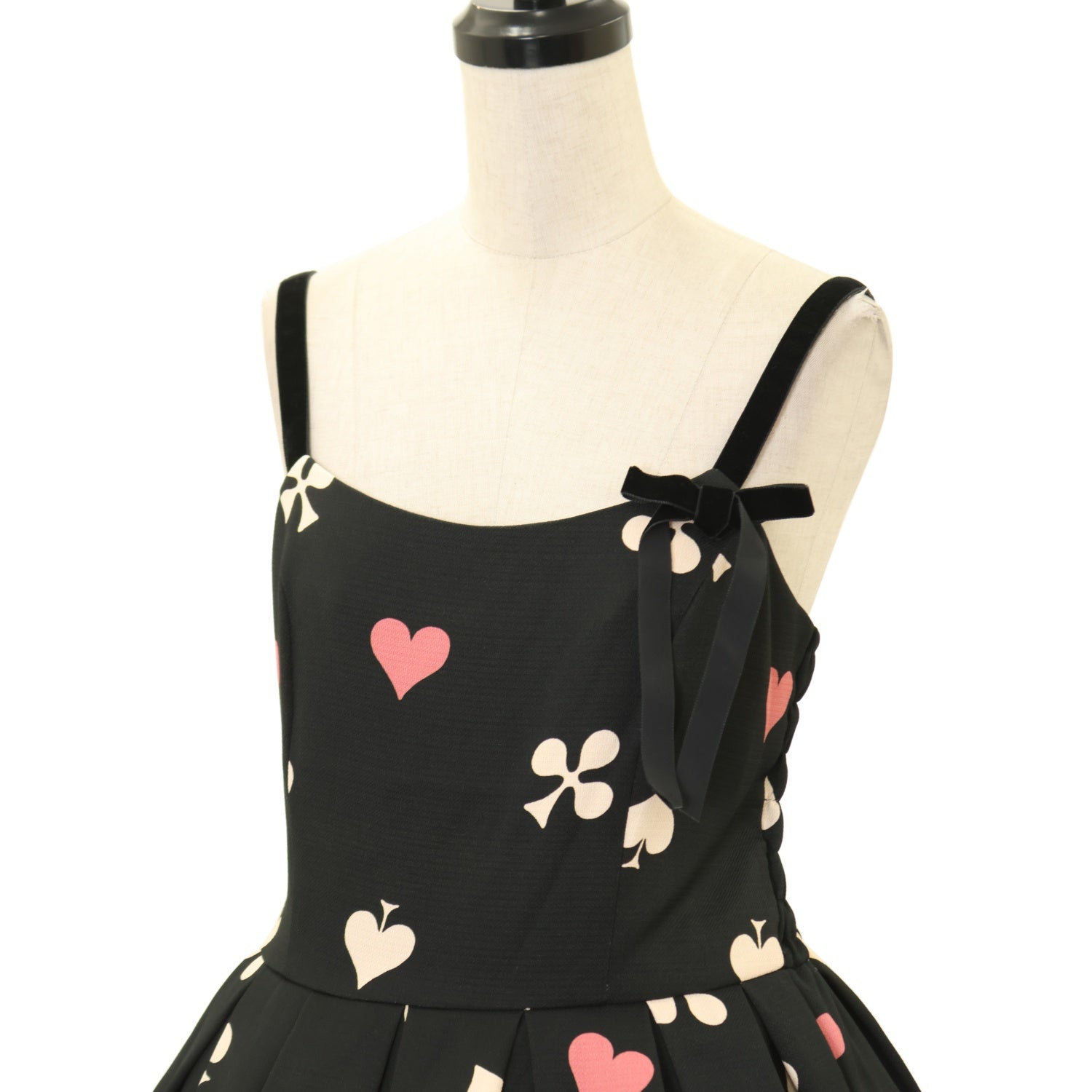 【USED】ビンテージトランププリントジャストウエスト切替ワンピース