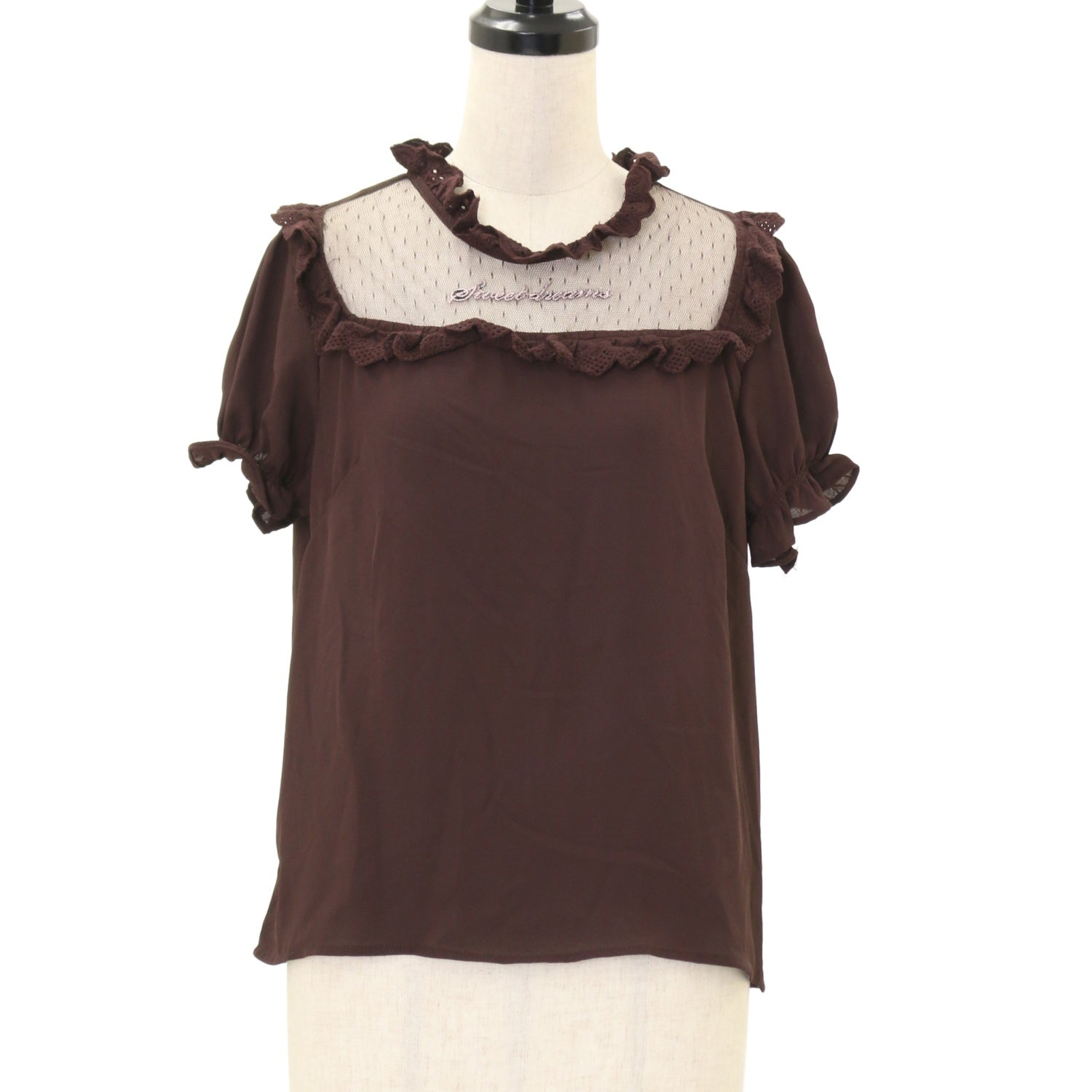 【USED】【Mサイズ】ドットチュールヨークシフォントップス