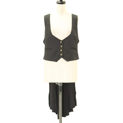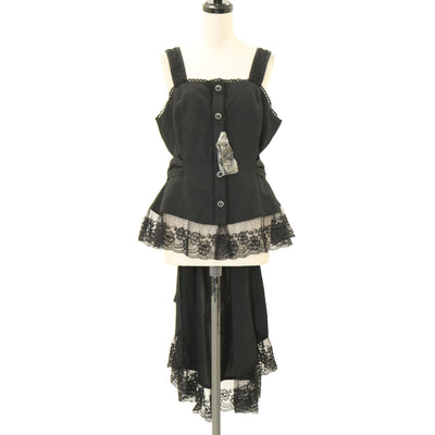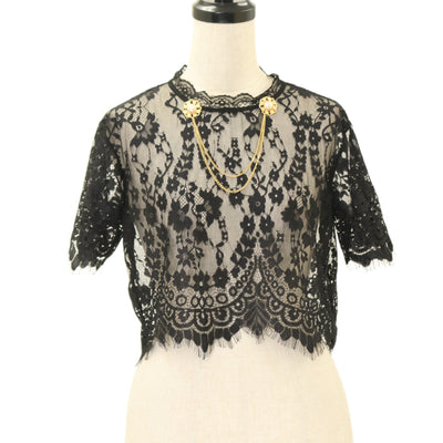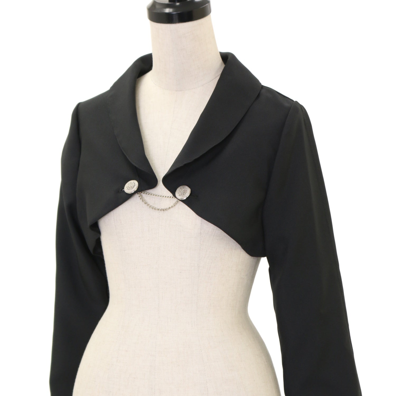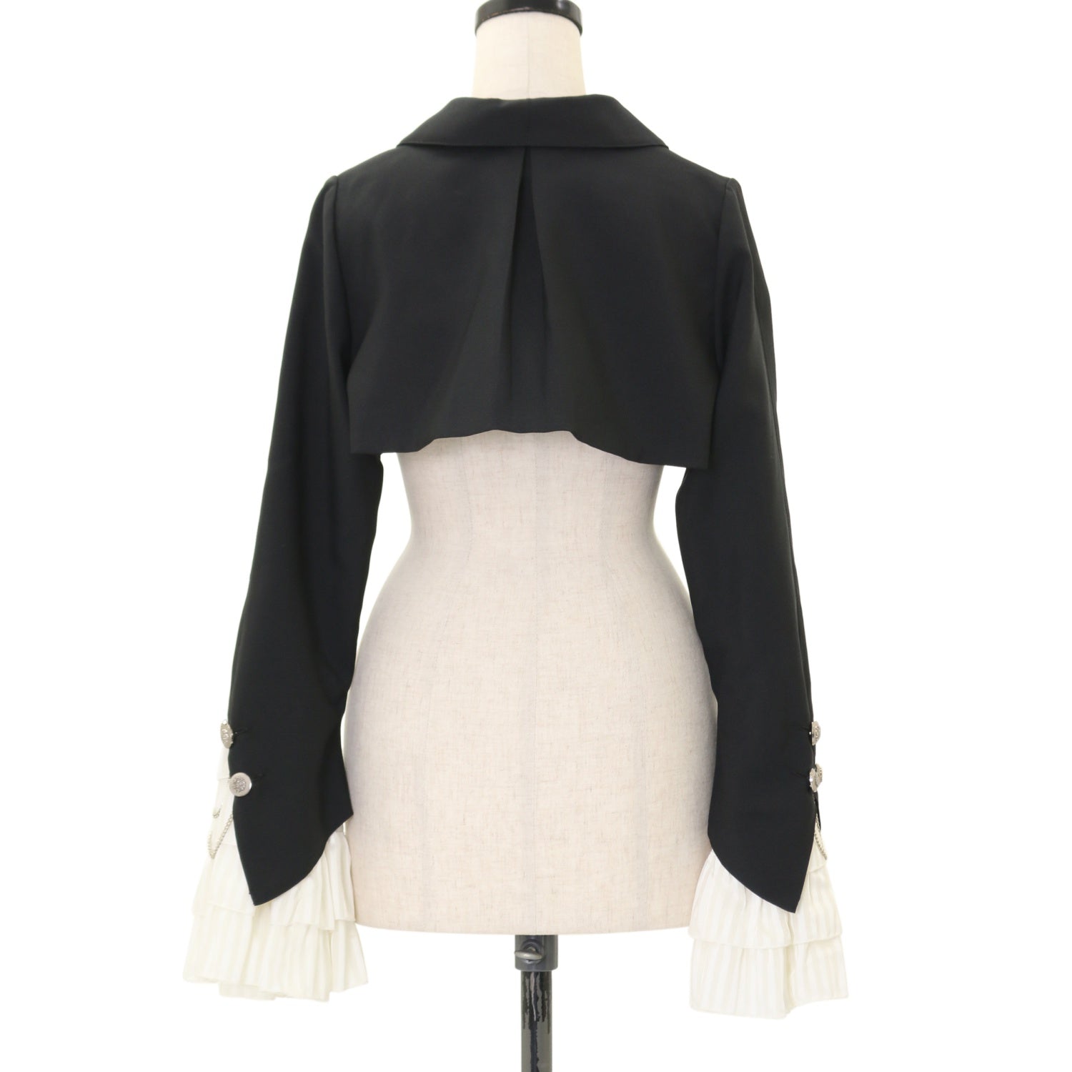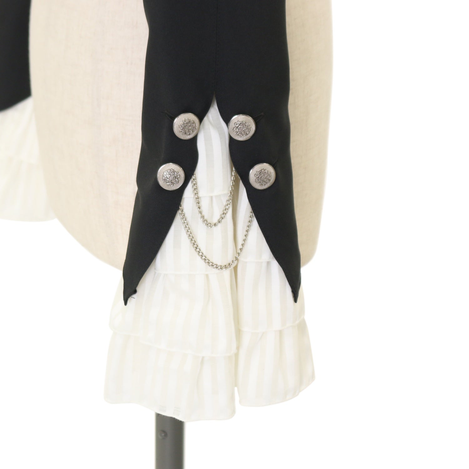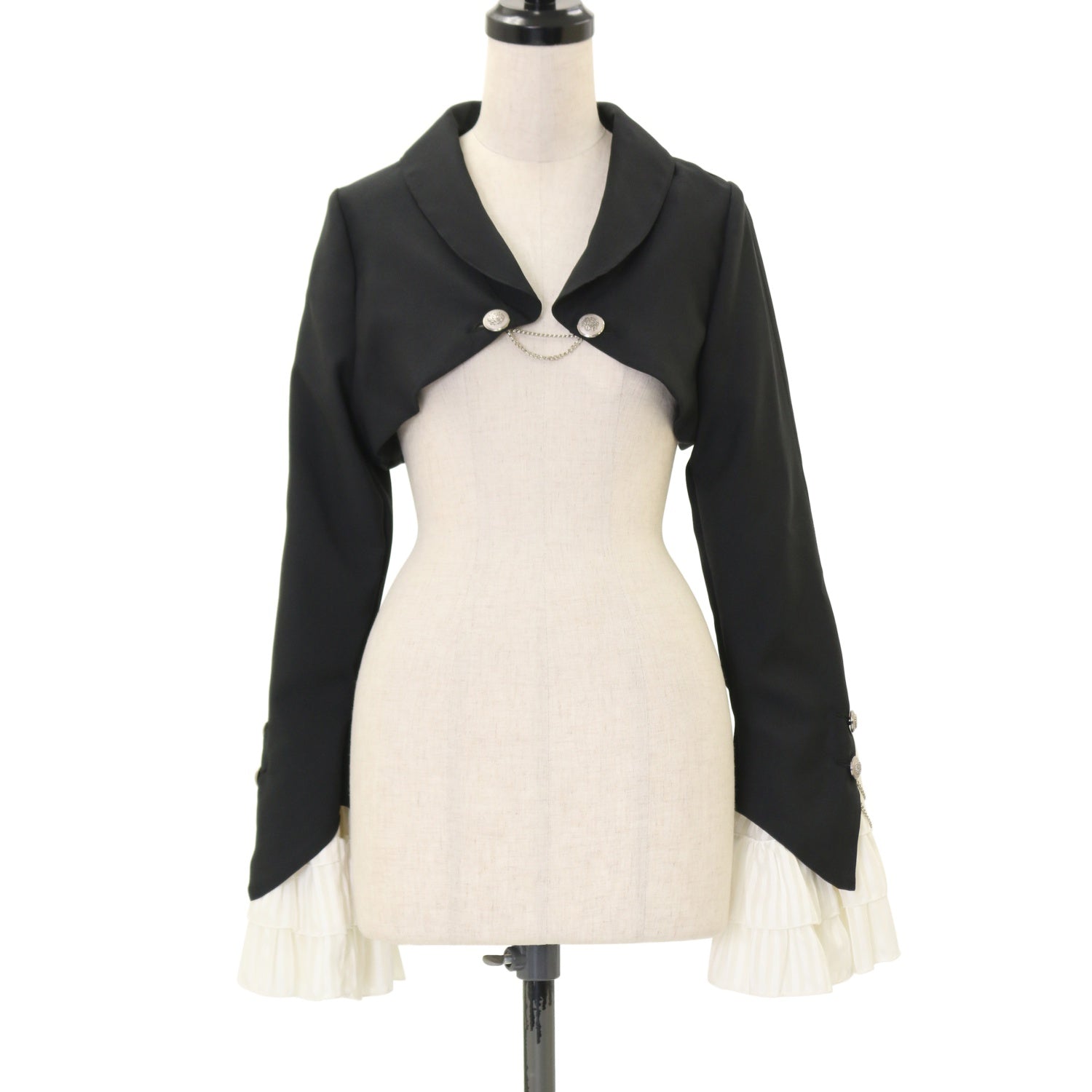 【USED】エンブレムチェーン付き姫袖ショートジャケット:黒×白フリル