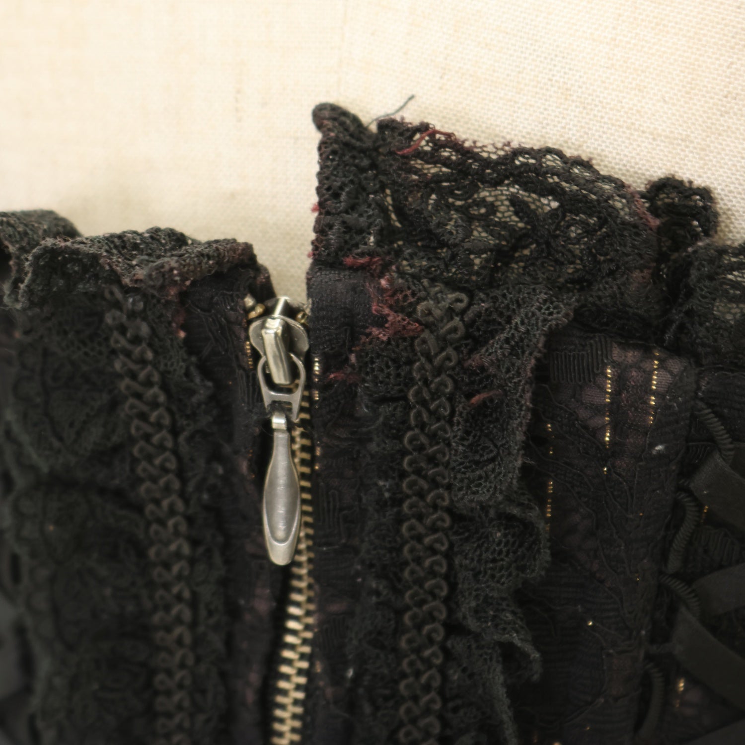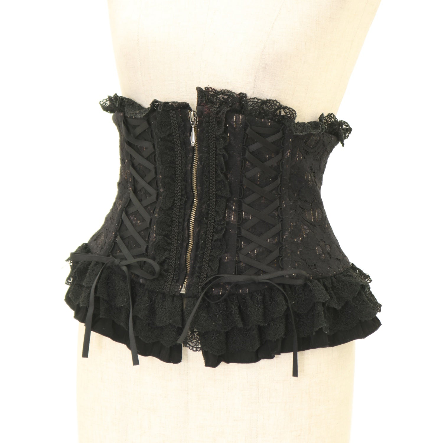 商品状態 | 使用感あり 内側に毛玉・付着物 レースに変色・ほつれ 編み上げリボン先端にほつれ |