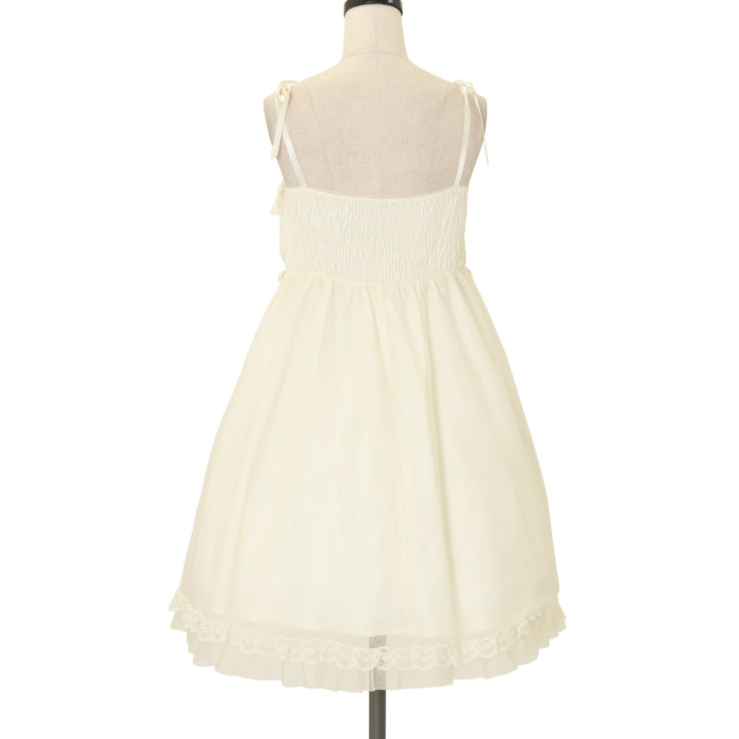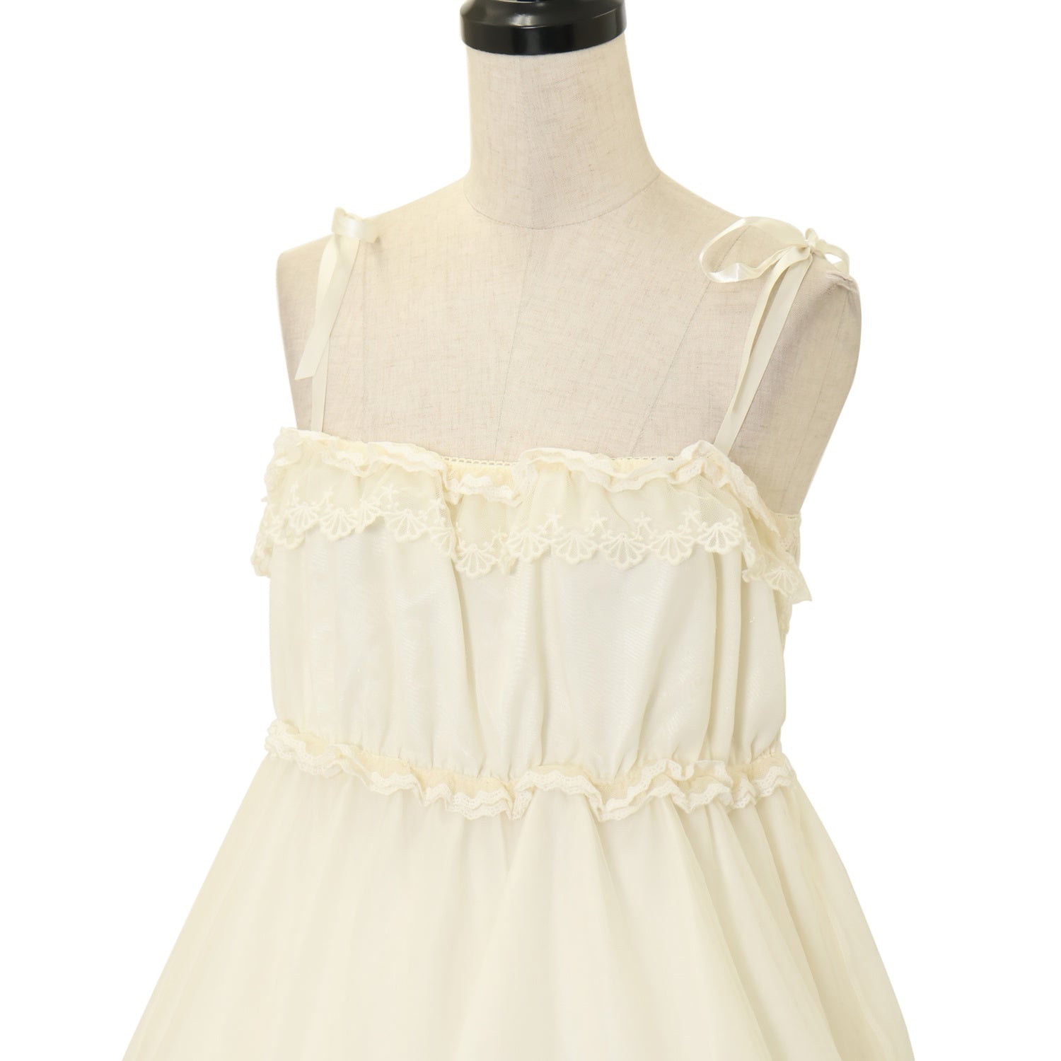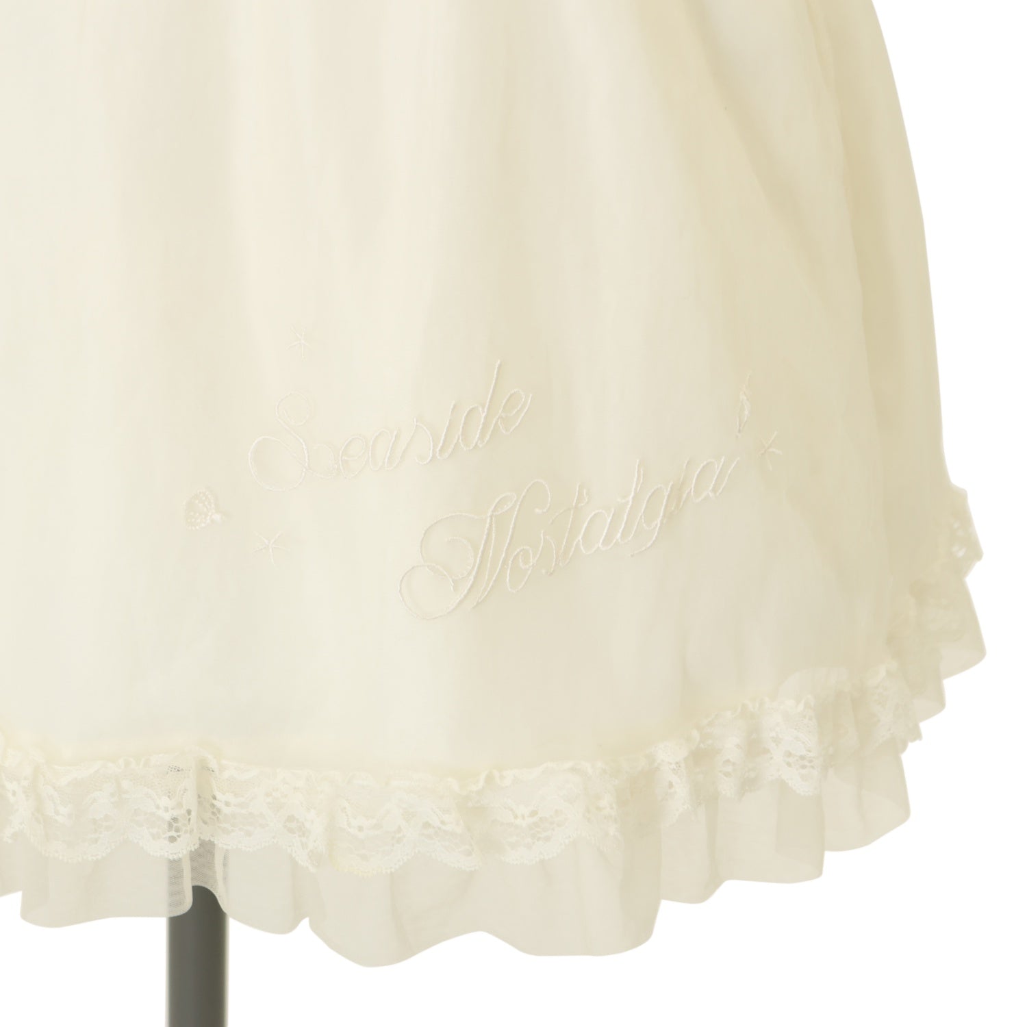 【USED】メッセージ刺繍入り ドビーDOT×チュール切り替えキャミワンピース