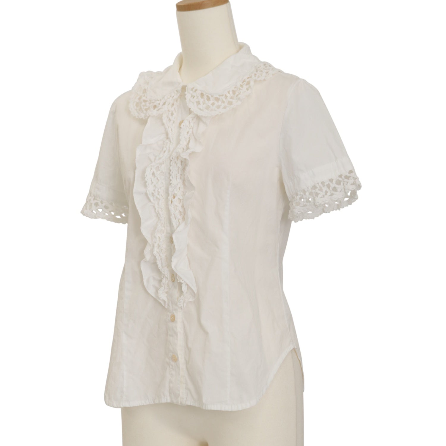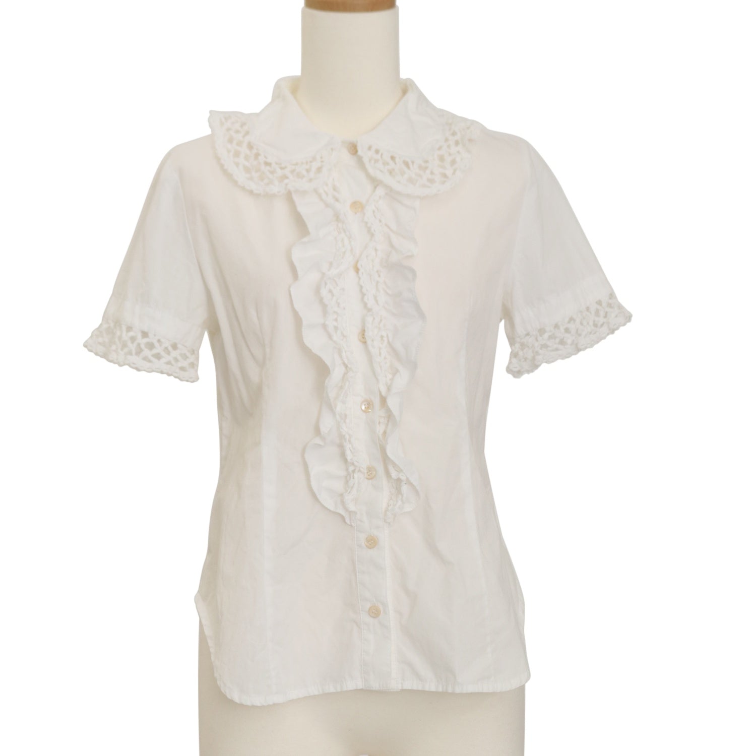 【USED】【Mサイズ】格子レースワイヤーカラーブラウス