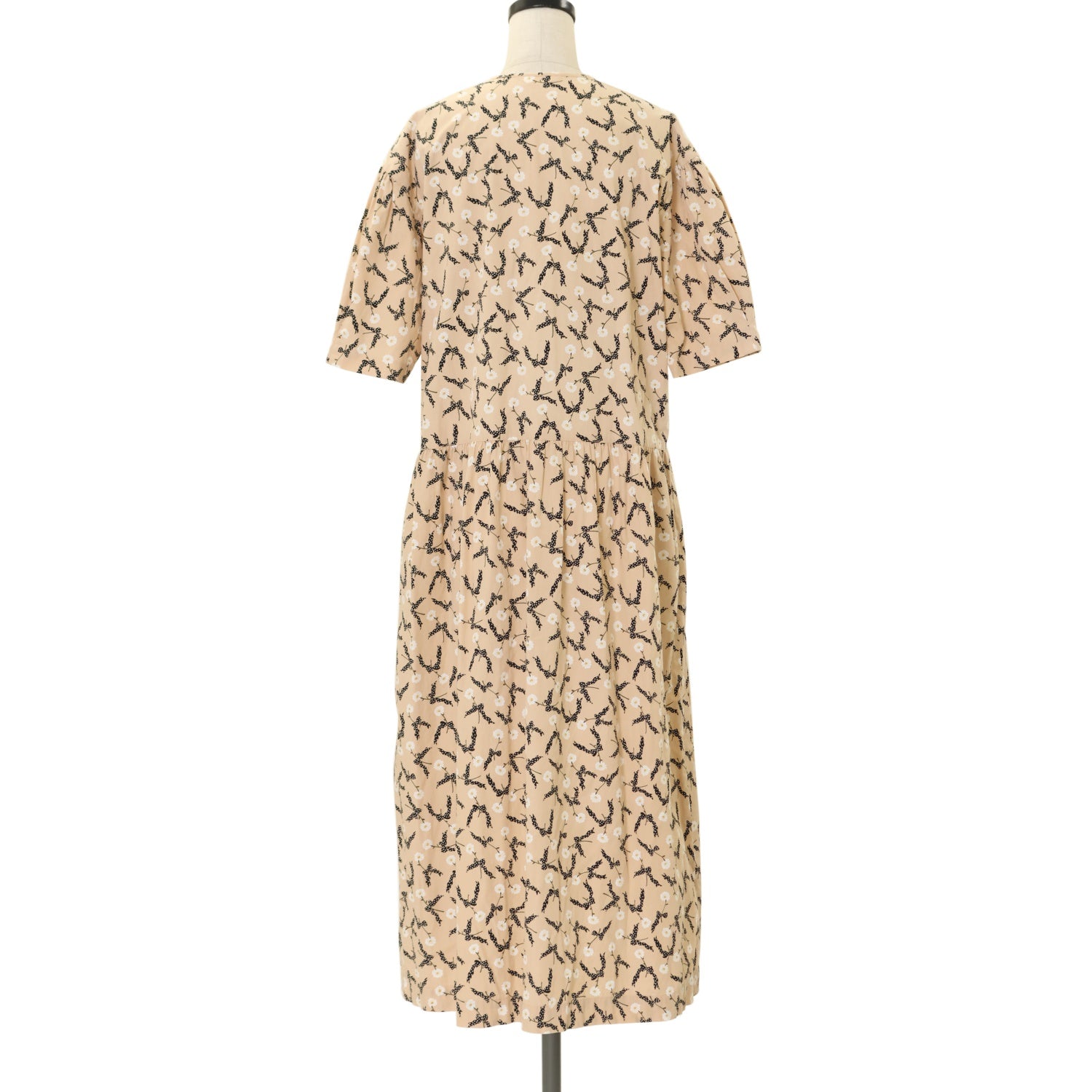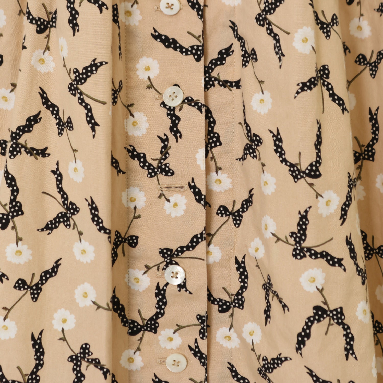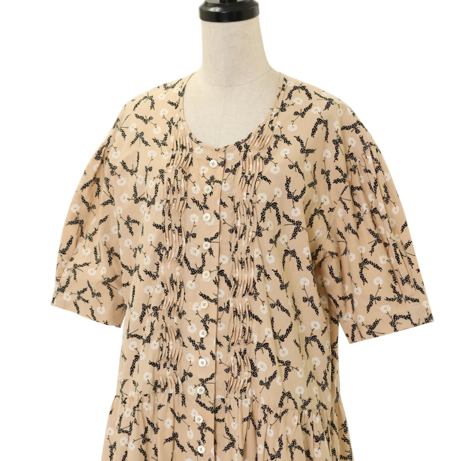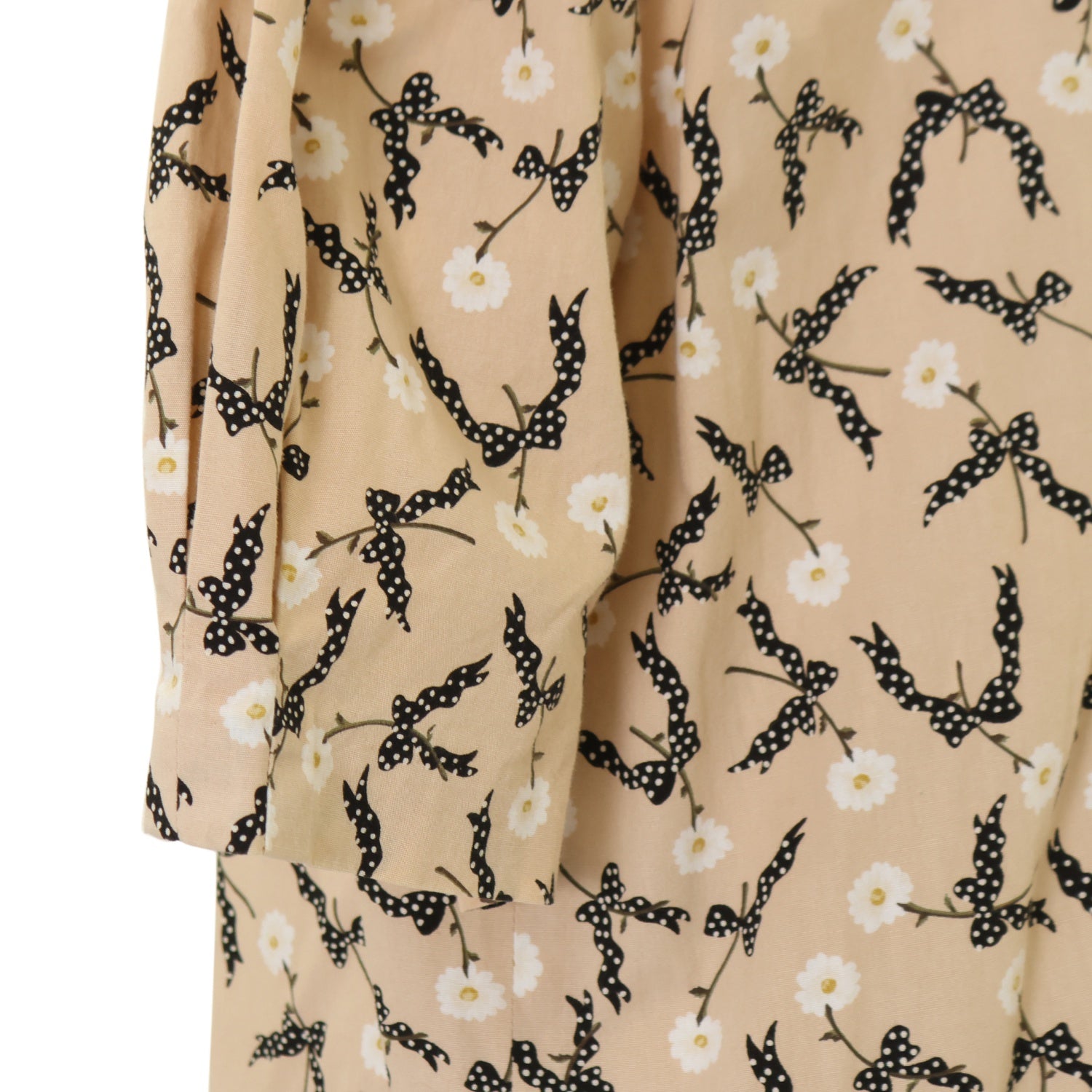【USED】水玉リボンマーガレット柄波タックワンピース