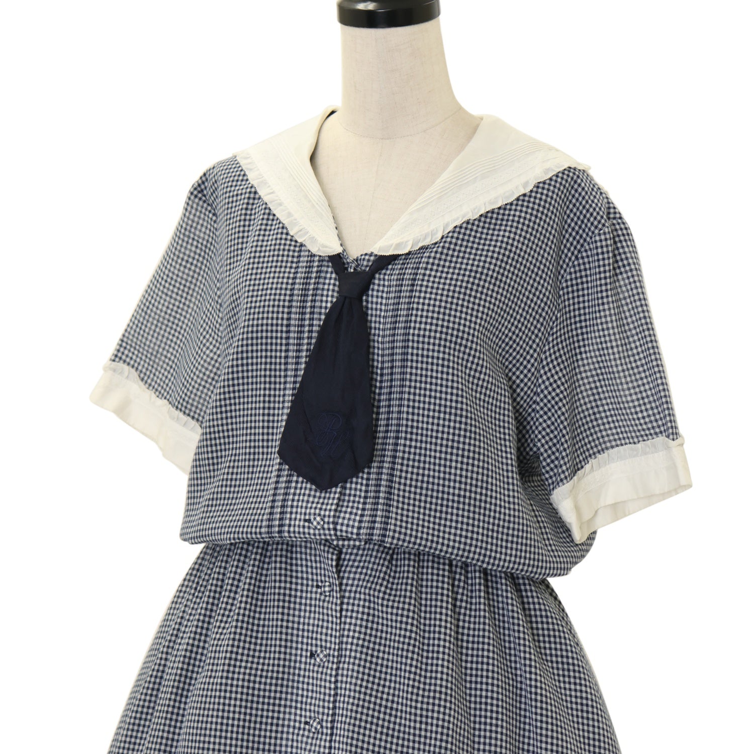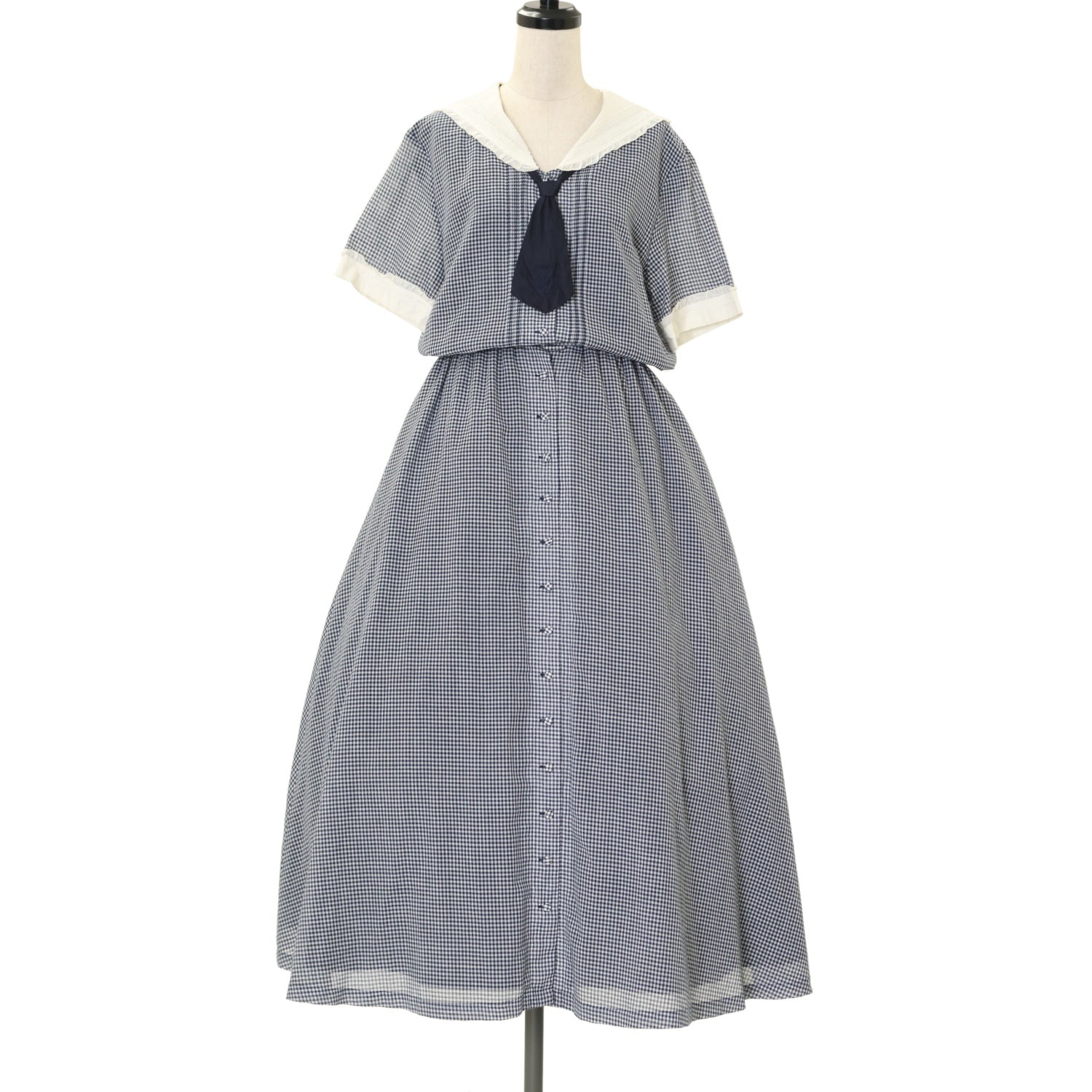 【USED】ギンガムチェックセーラーワンピース