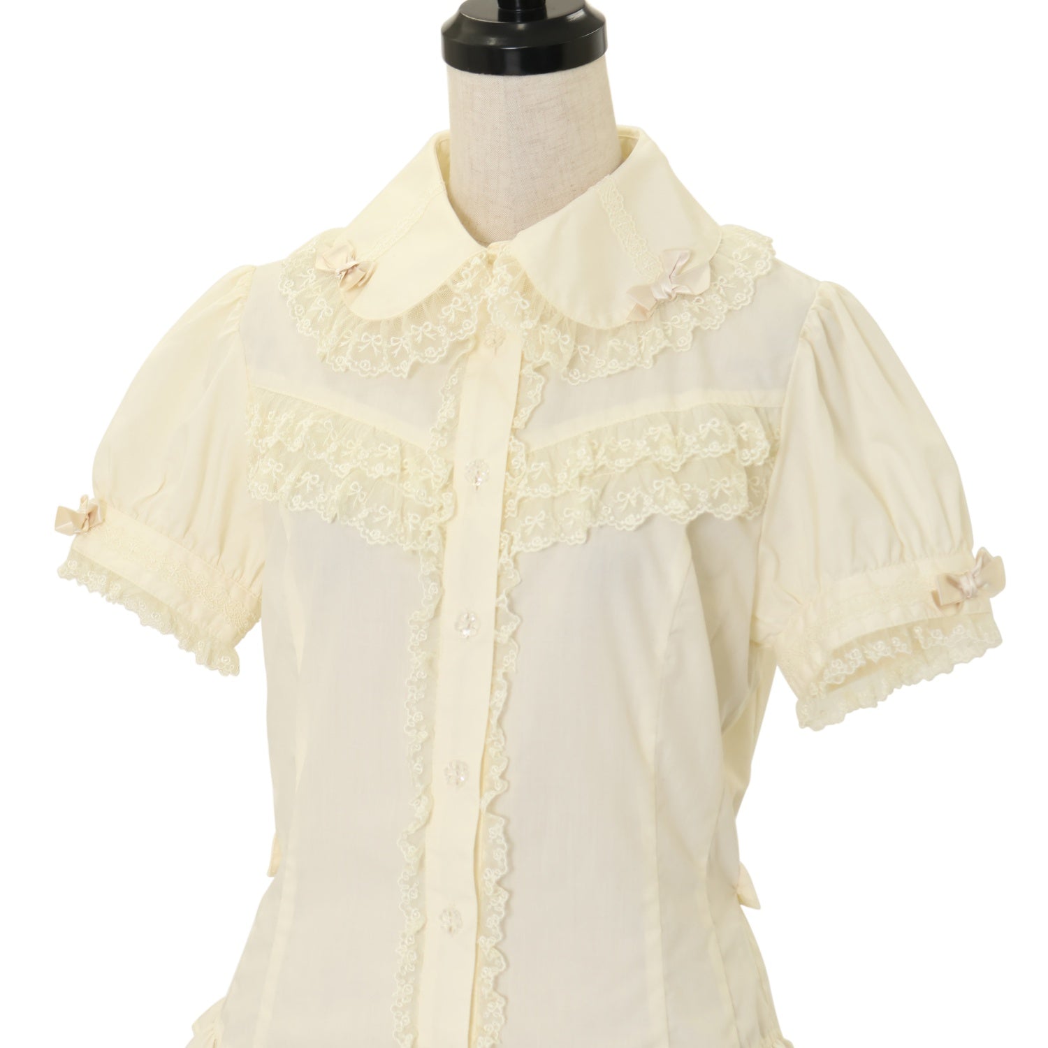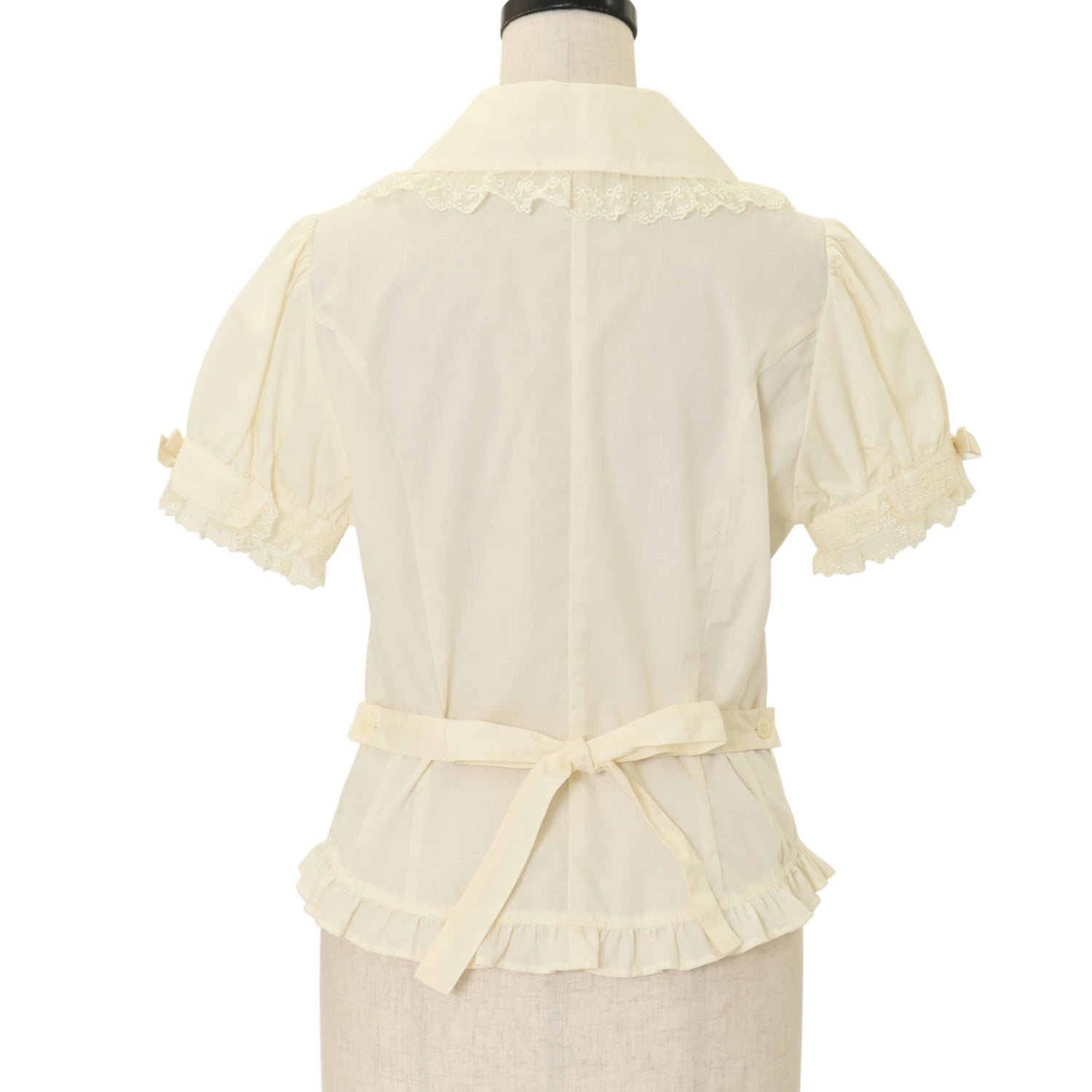 【USED】【Mサイズ】丸衿リボン半袖ブラウス